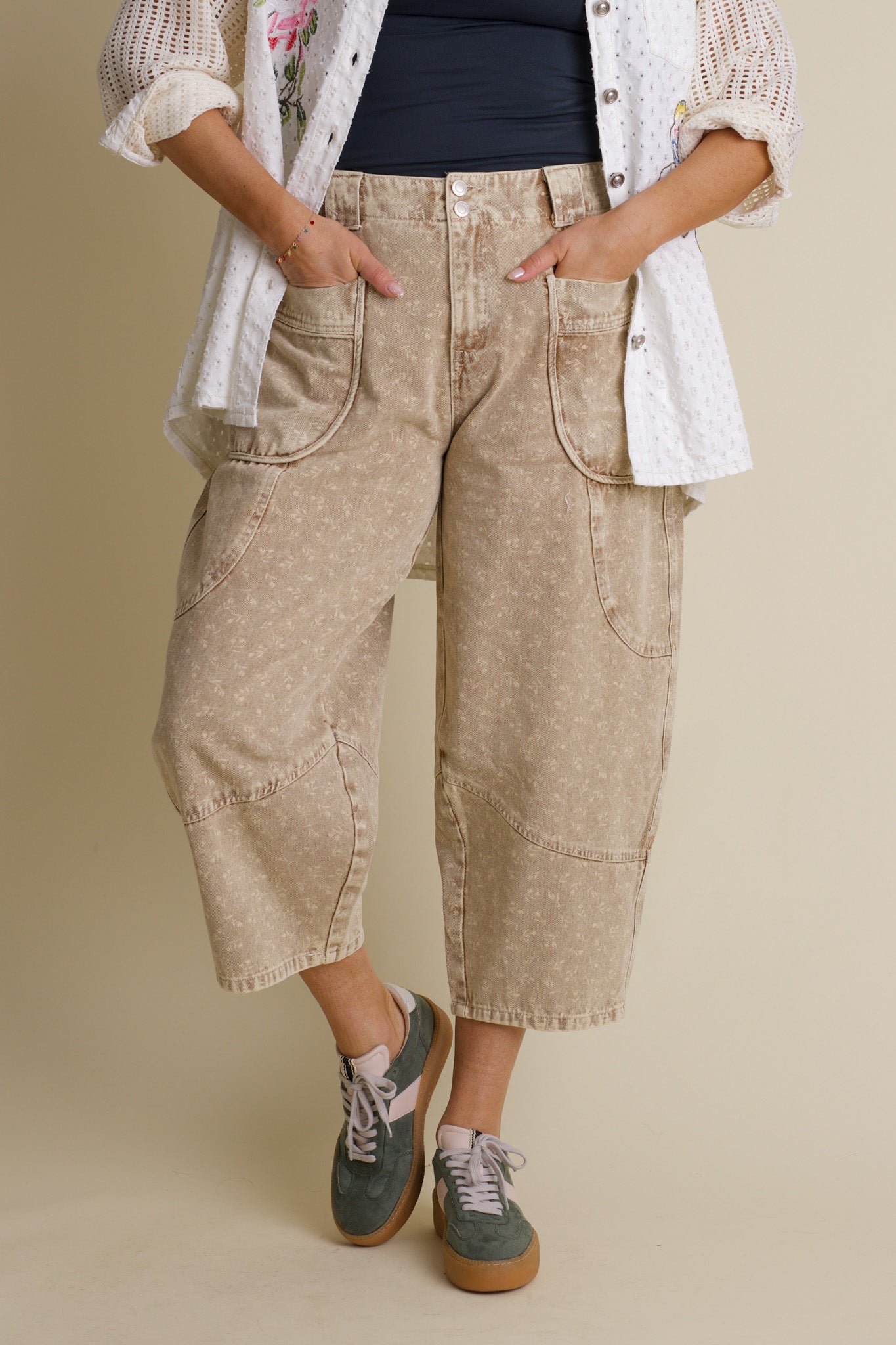Gain Your Trust Mineral Wash Barrel Leg Pants - Latte