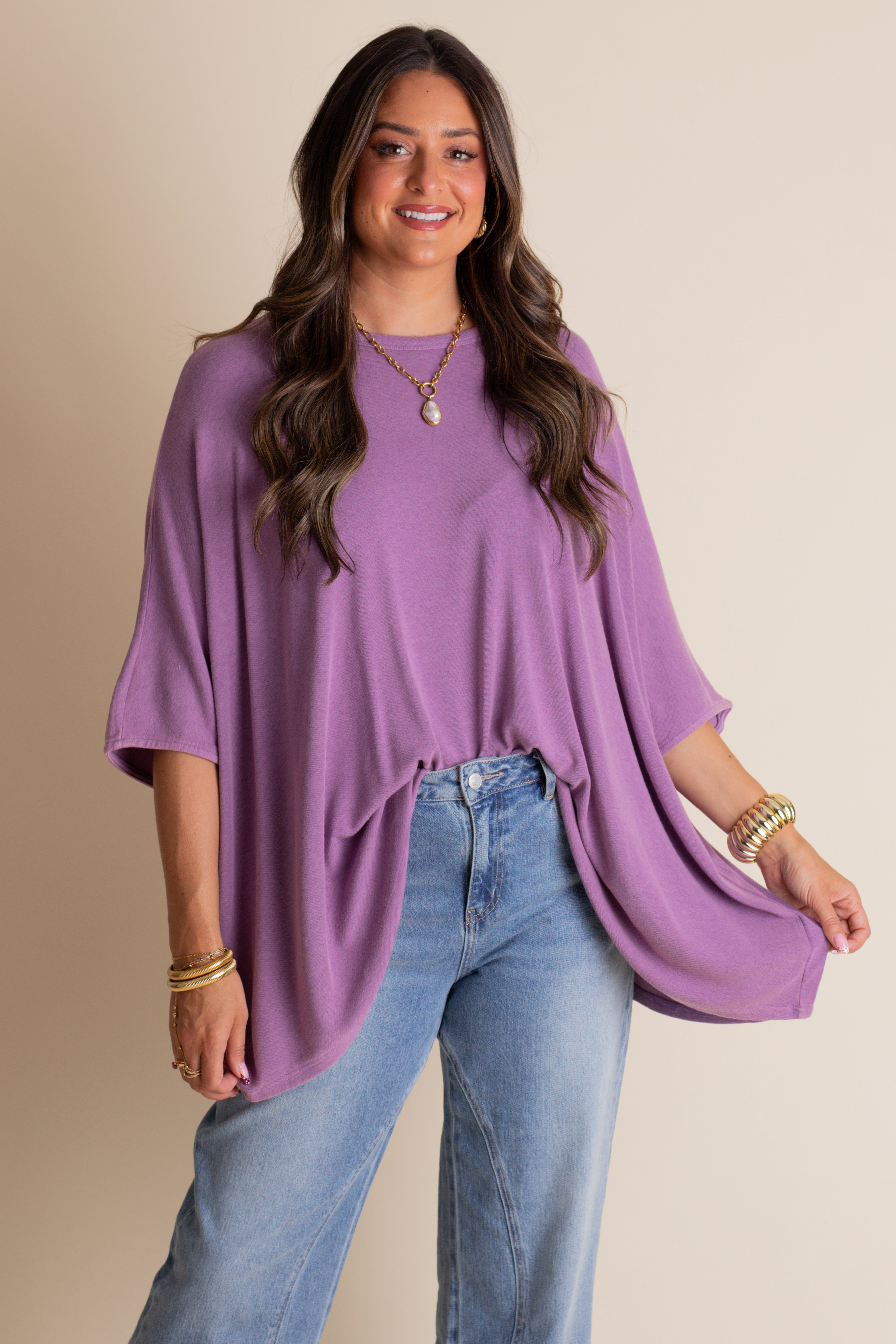 Embrace comfort and charm with this super soft mineral washed oversized top, featuring relaxed dolman sleeves for easy movement. The playful black seam detail highlights a sweet embroidered heart, adding a touch of whimsy to your everyday look. Perfect for cozy days when you want to choose joy effortlessly. Available in 3 color options and sizes small through large!