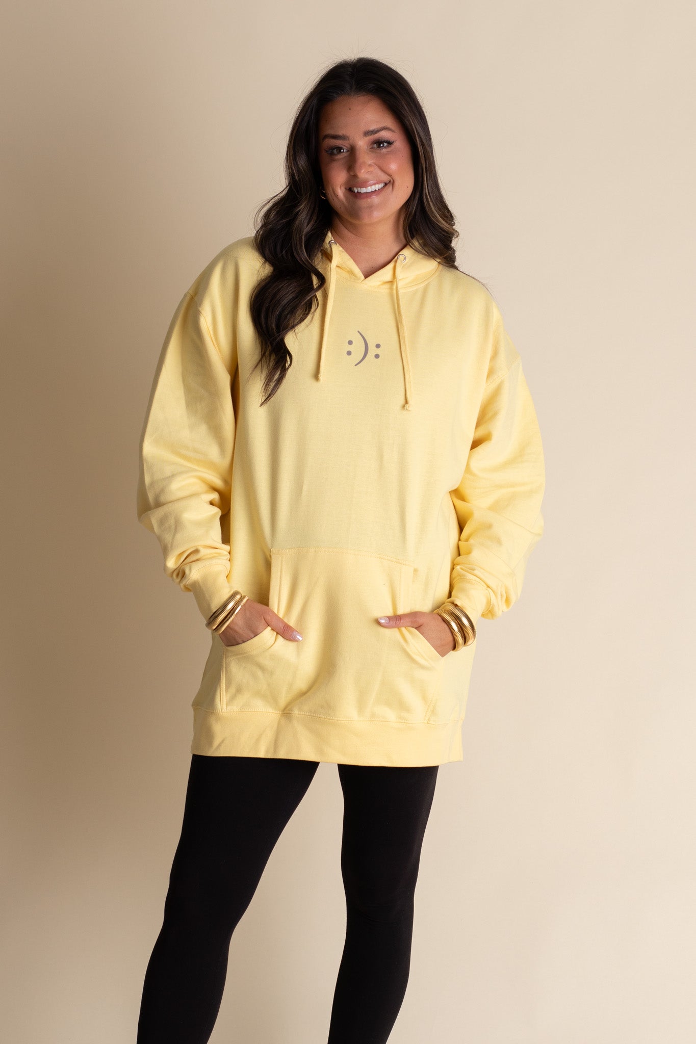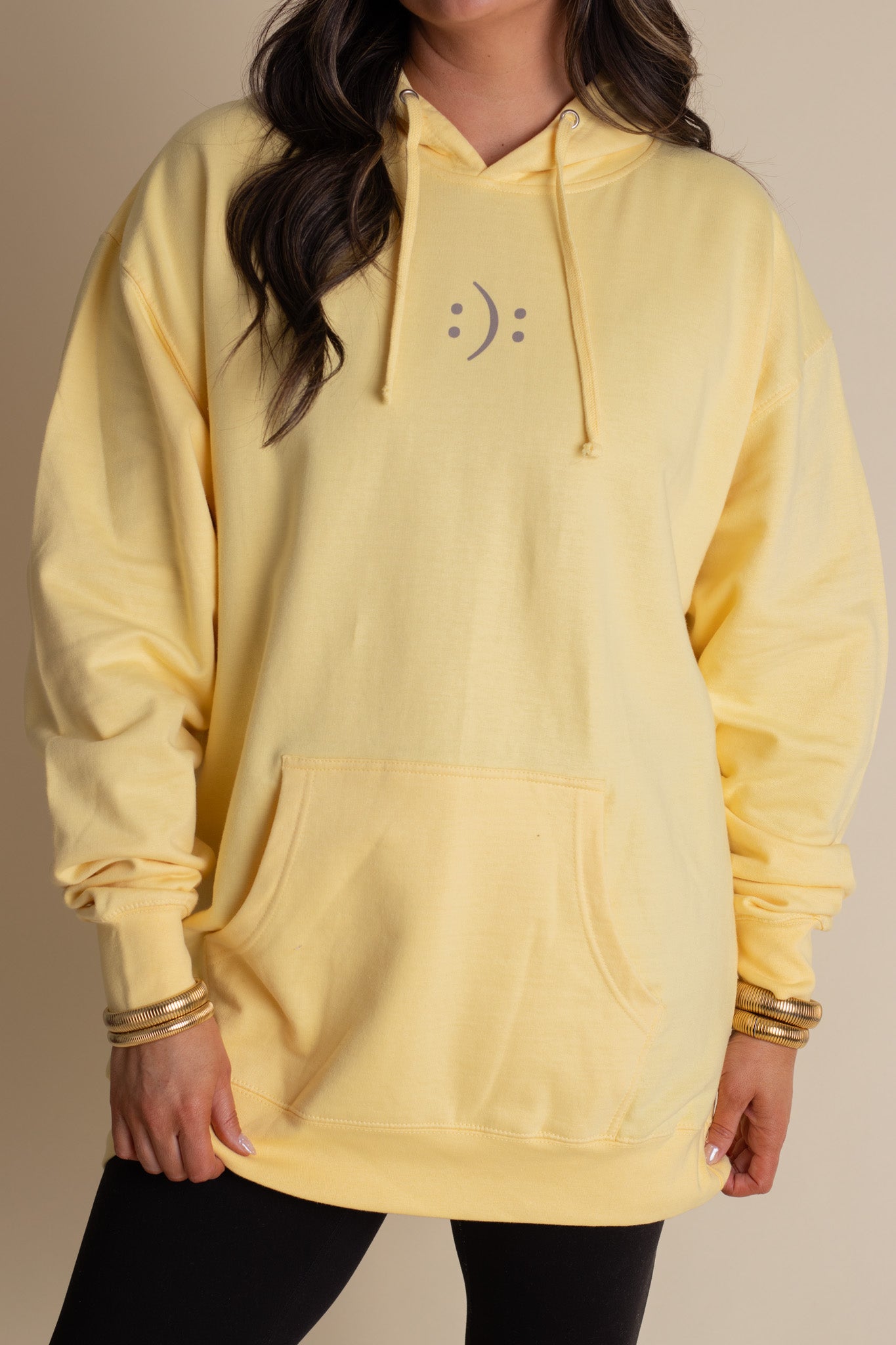 Upgrade your wardrobe with our Mindset Is Everything Hoodie. Made with a soft yellow fabric, this hooded sweatshirt features a motivating quote on the back and a smiley frowny on the front. Our in-house graphics and printing ensure high quality. Perfect for those who believe in the power of mindset.