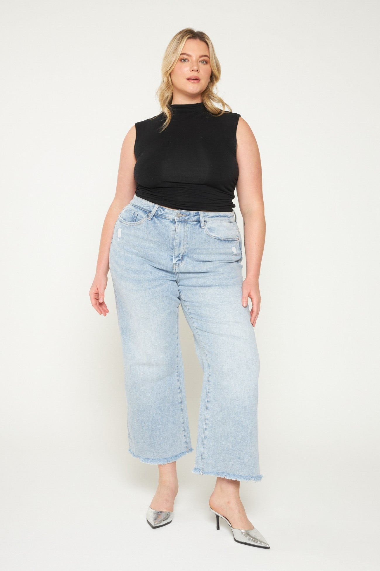 These Courtney High Rise Ankle Wide Leg Jeans bring effortless cool to your wardrobe. With a stretchy fit and medium wash, they offer comfort and style all day long. The slight distressing adds just the right touch of edge, while the frayed cropped hem keeps things playful and trendy. Perfect for pairing with your favorite tees or boots, these jeans are a fun upgrade to your everyday look. Limited stock and available in sizes 25-22W!