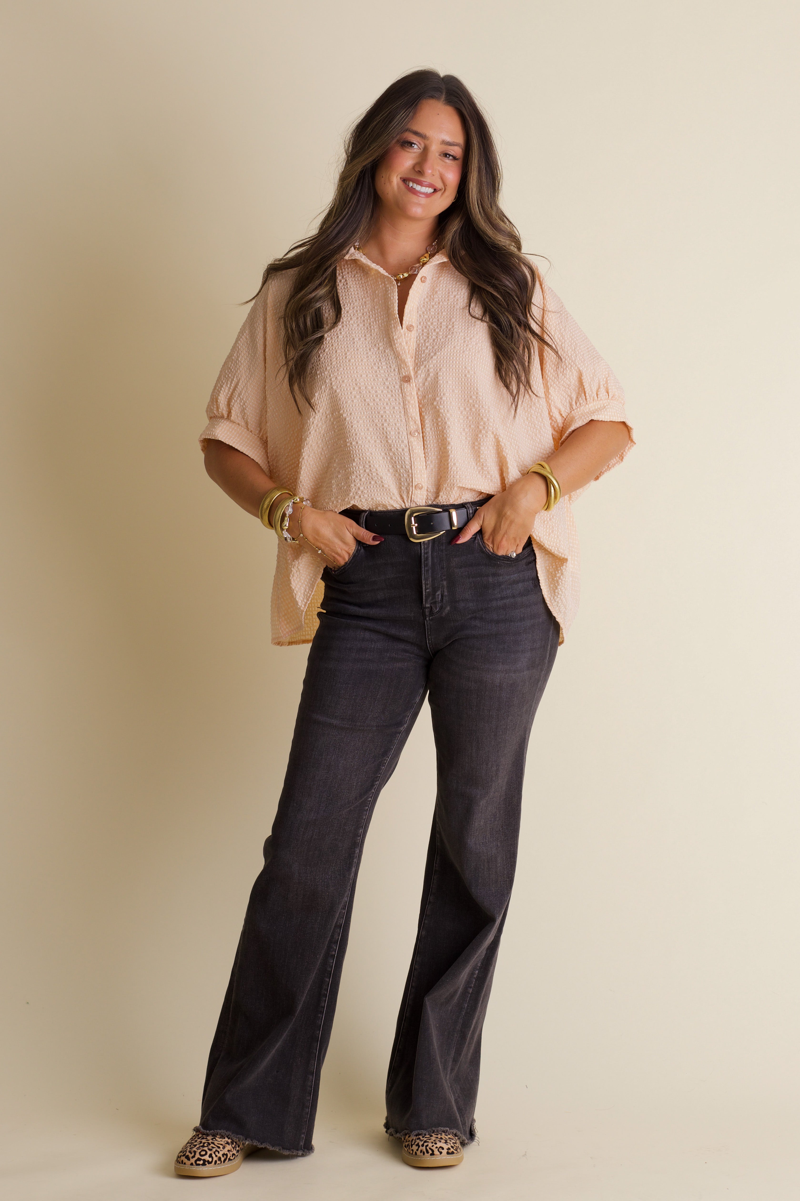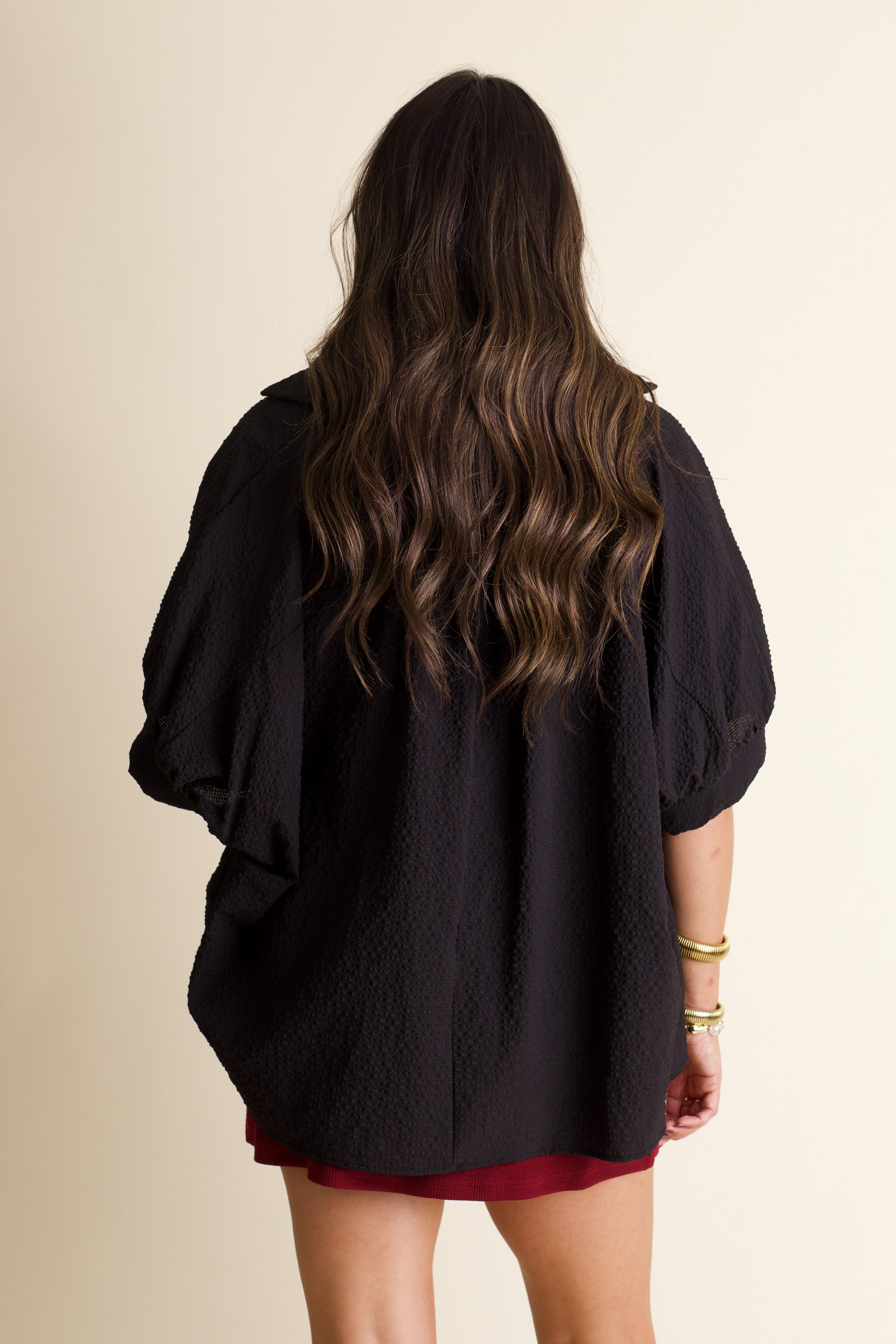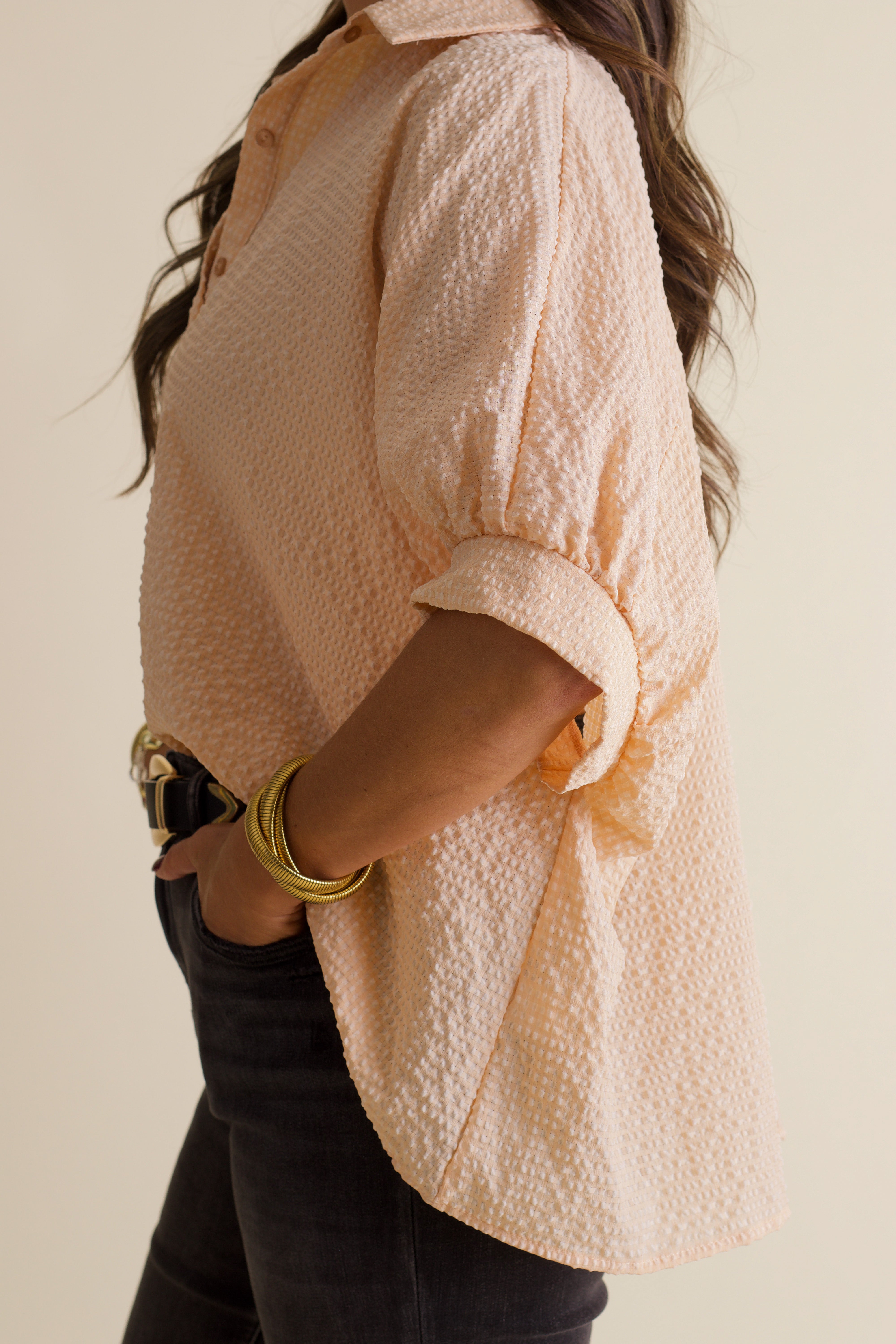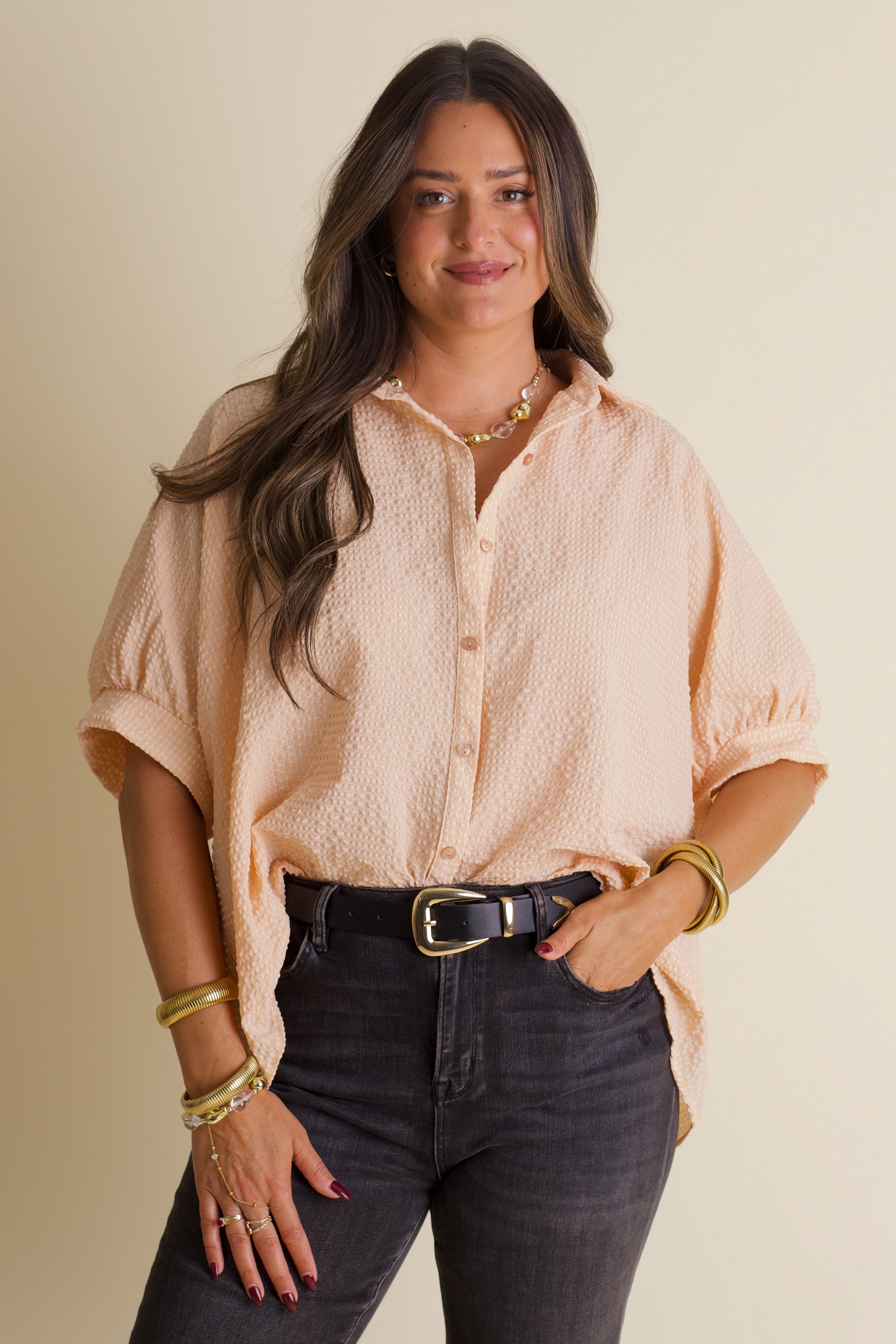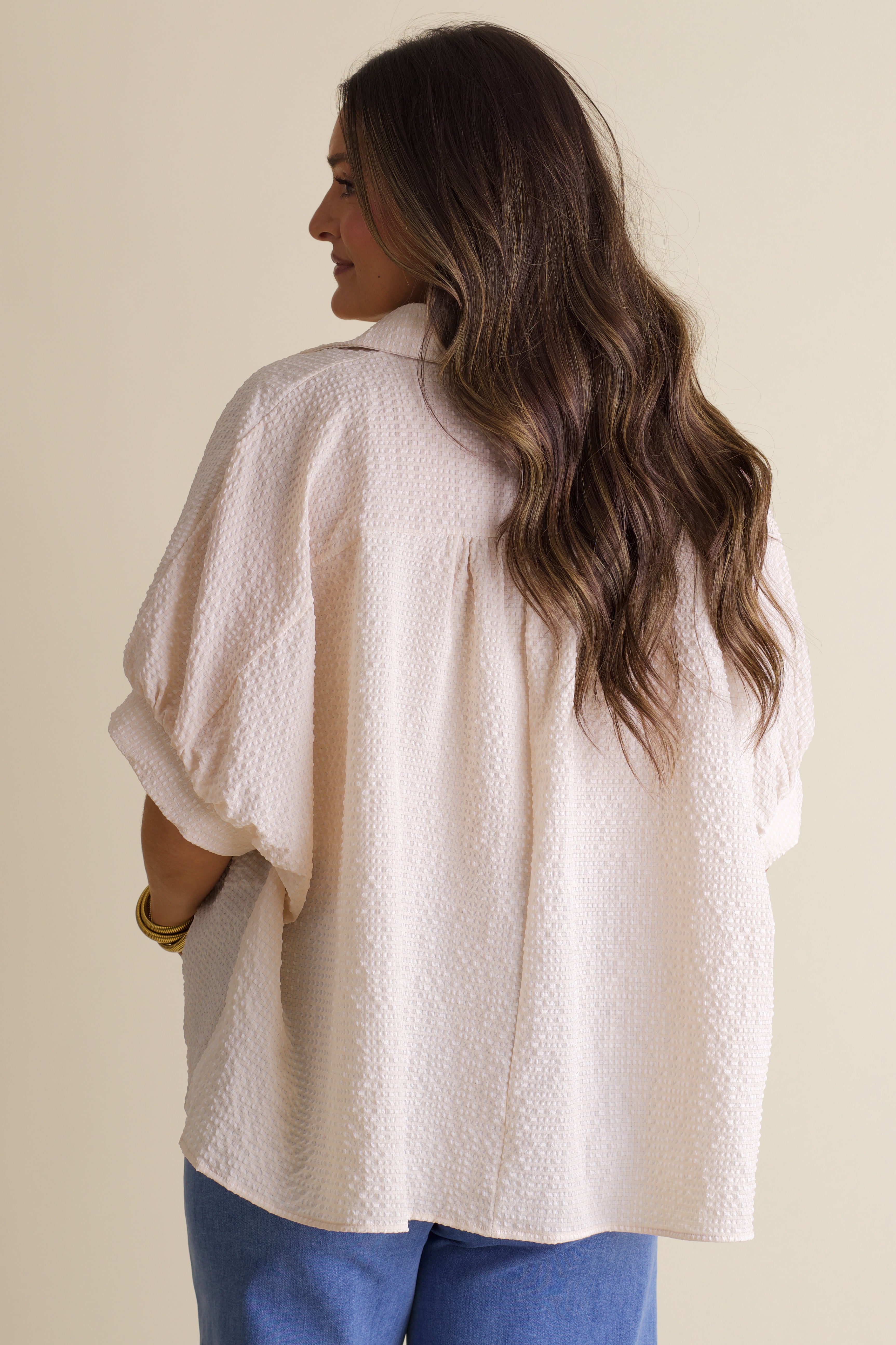 Step into playful comfort with the  Boss Babe Button Up Gingham Top. Its charming textured gingham print and breezy oversized dolman sleeves create an effortlessly cool vibe. The high-low hem adds a fun twist, while the relaxed fit lets you layer or go solo with ease. Available in three vibrant colors and sizes S/M and 2XL/3XL, this top is your new go-to for casual chic style that moves with you.