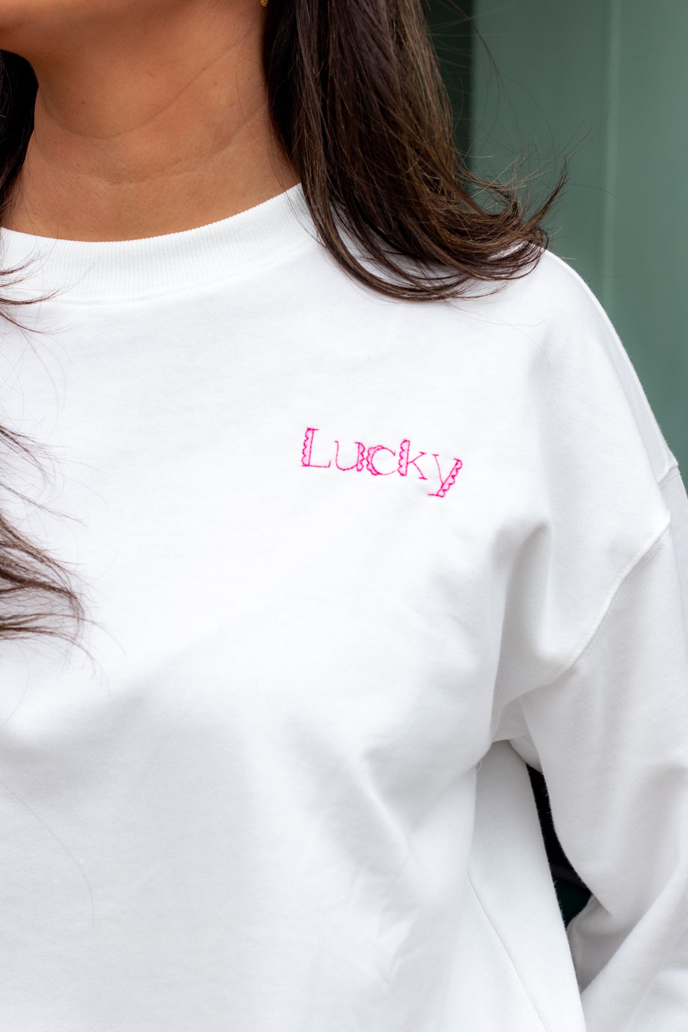 This feel-good sweatshirt is all about sweet details and everyday comfort. Crafted in a soft, relaxed fit, it features delicate embroidery that adds the prettiest pop—subtle on the front and extra charming on the back. The lucky motif feels playful and heartfelt, making it one of those pieces you’ll reach for when you want comfort with a little extra joy. Easy to style, easy to love, and perfect for layering or lounging in style. 🍀✨