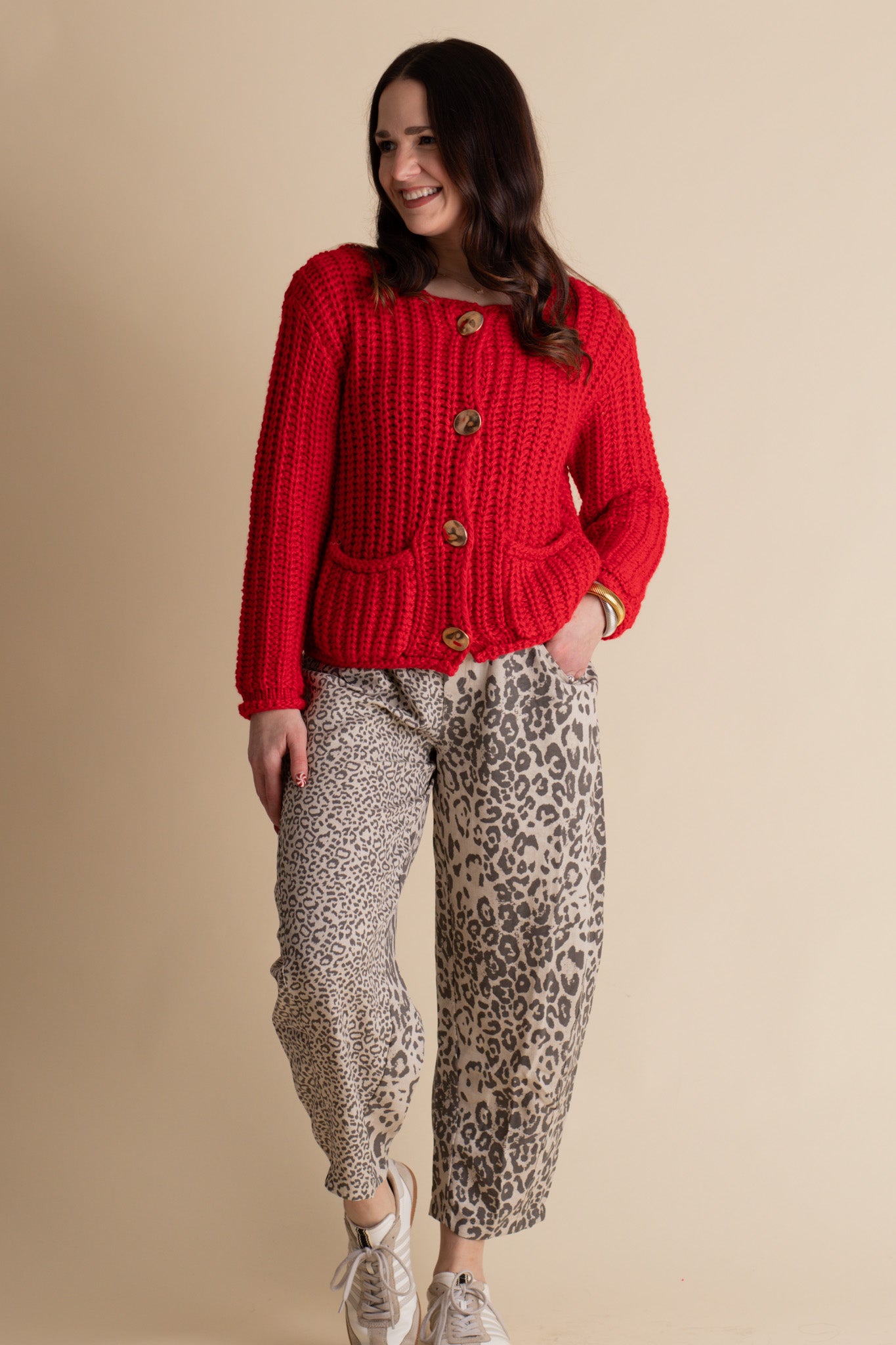 Strut your stuff in these Believe In Me Barrel Leg Pants—the perfect blend of comfort and style. Featuring a lightweight fabric with a chic leopard print, these pants deliver effortless flair for any occasion. The elastic waist keeps you comfy all day long, while functional pockets mean you've got room for your essentials. Whether you're running errands or heading out for a night on the town, these barrel legs are your new go-to for looking fabulous without sacrificing comfort. Limited stock and available in sizes small through large!