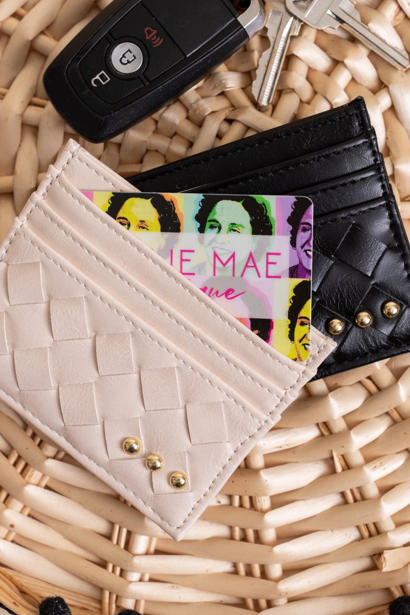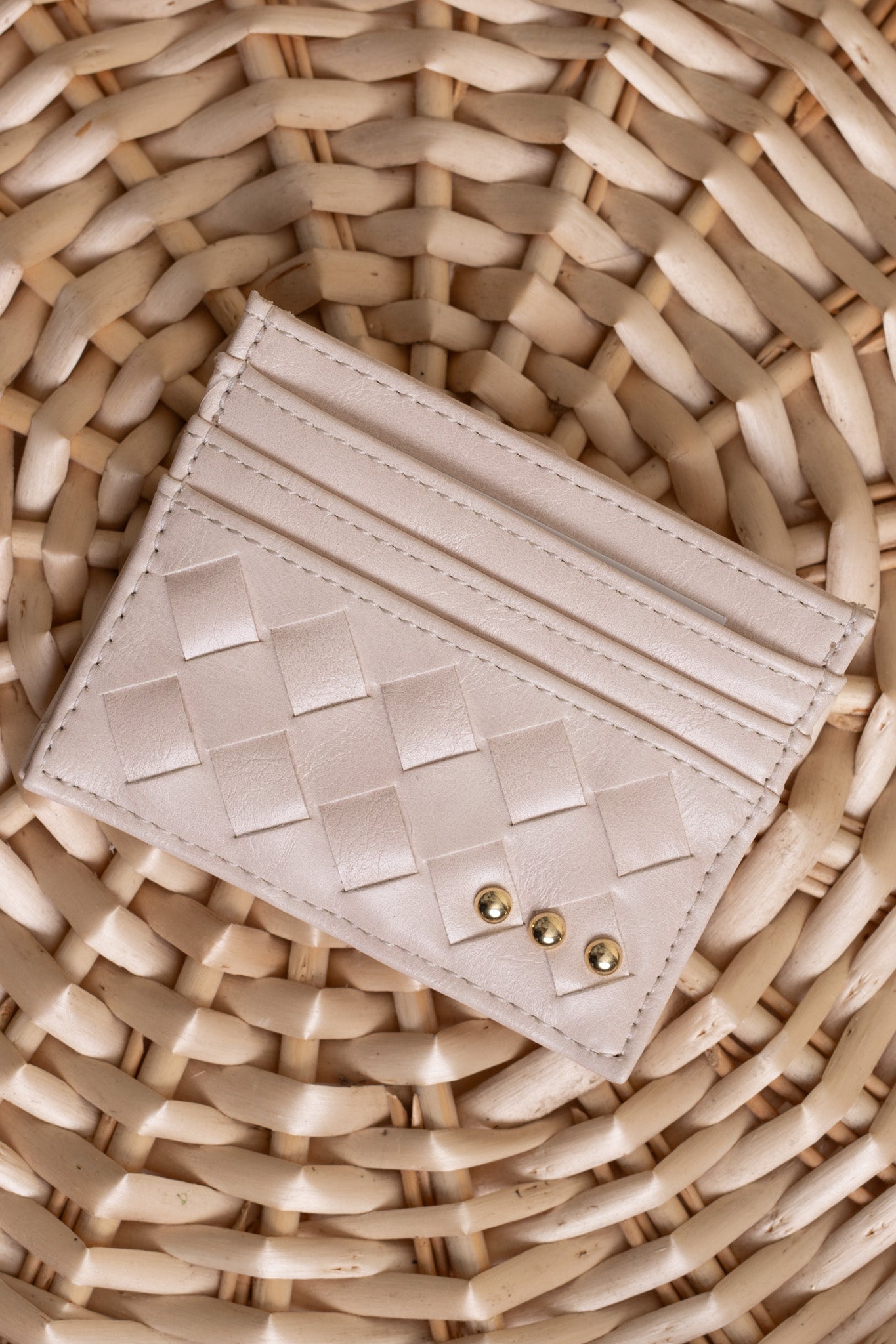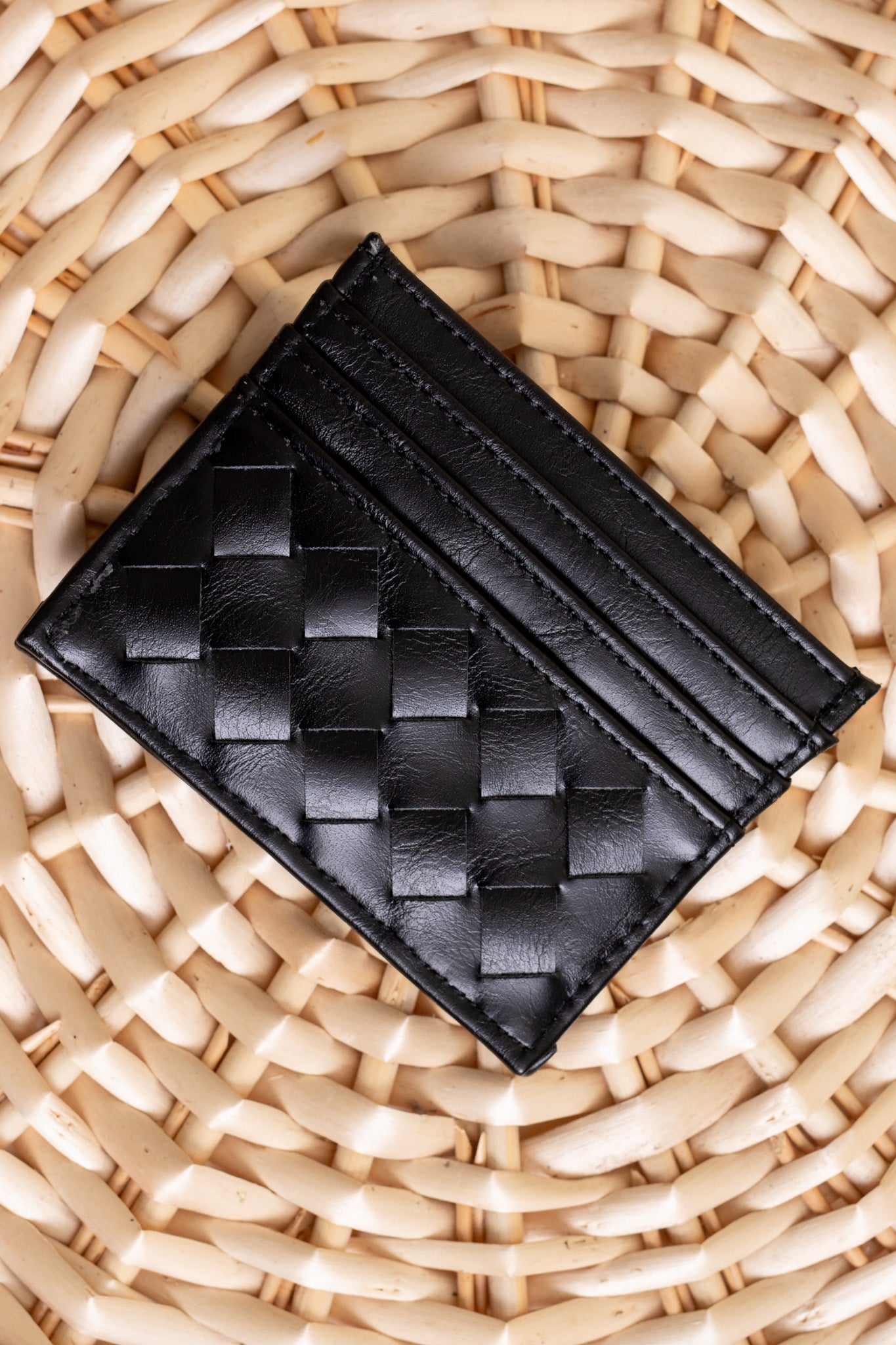 Meet the Mariah Woven Small Card Holder Wallet—proof that mighty things come in tiny packages! This adorable vegan leather wallet keeps your cards within arm's reach thanks to exterior slots, while the roomy interior holds everything else you need. Handwoven in three stunning shades—classic black, creamy ivory, and warm brown—it's the pocket-sized essential that brings both function and flair to your everyday carry. Perfectly sized at 4.5"x 3.5", it's your new favorite wallet upgrade.