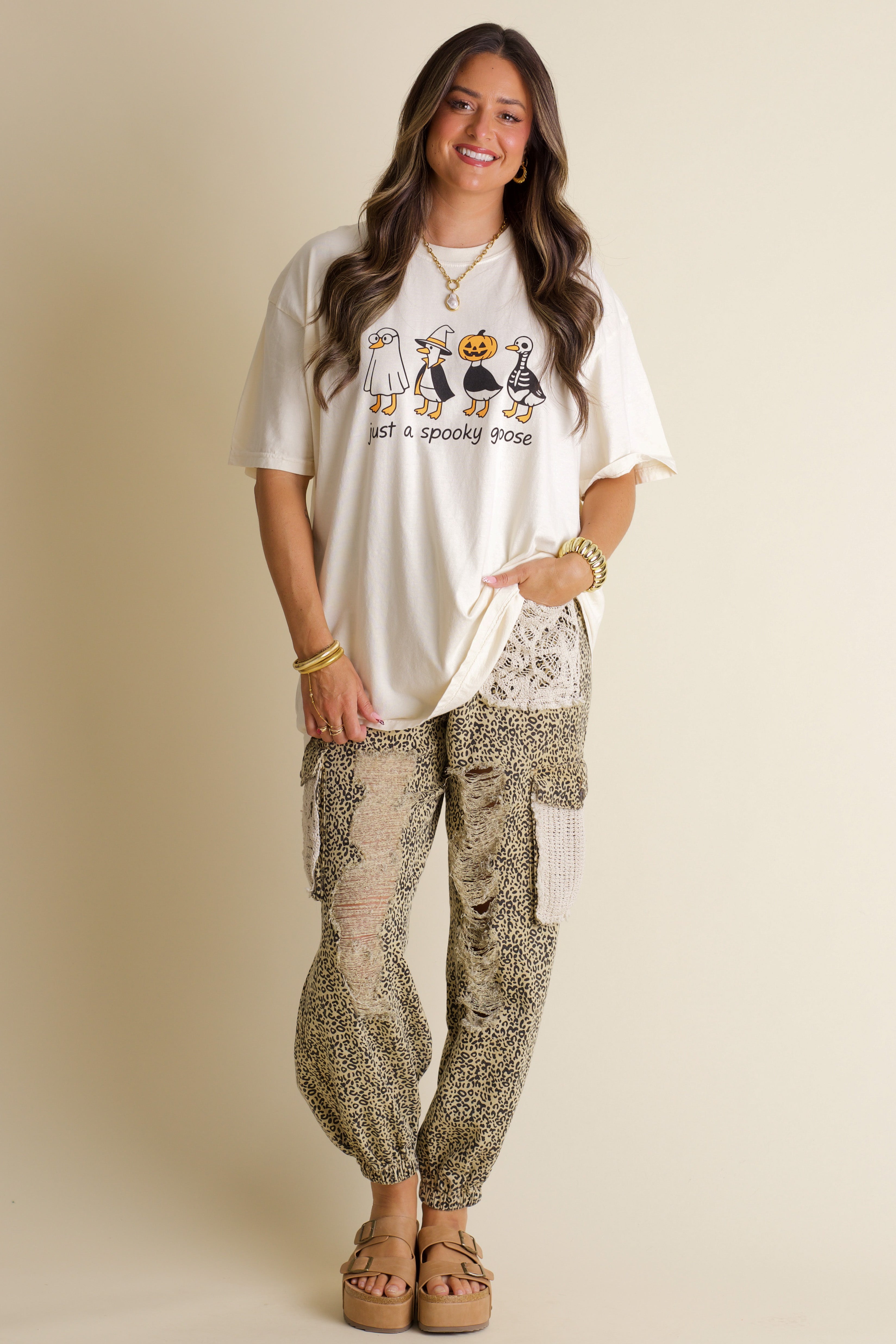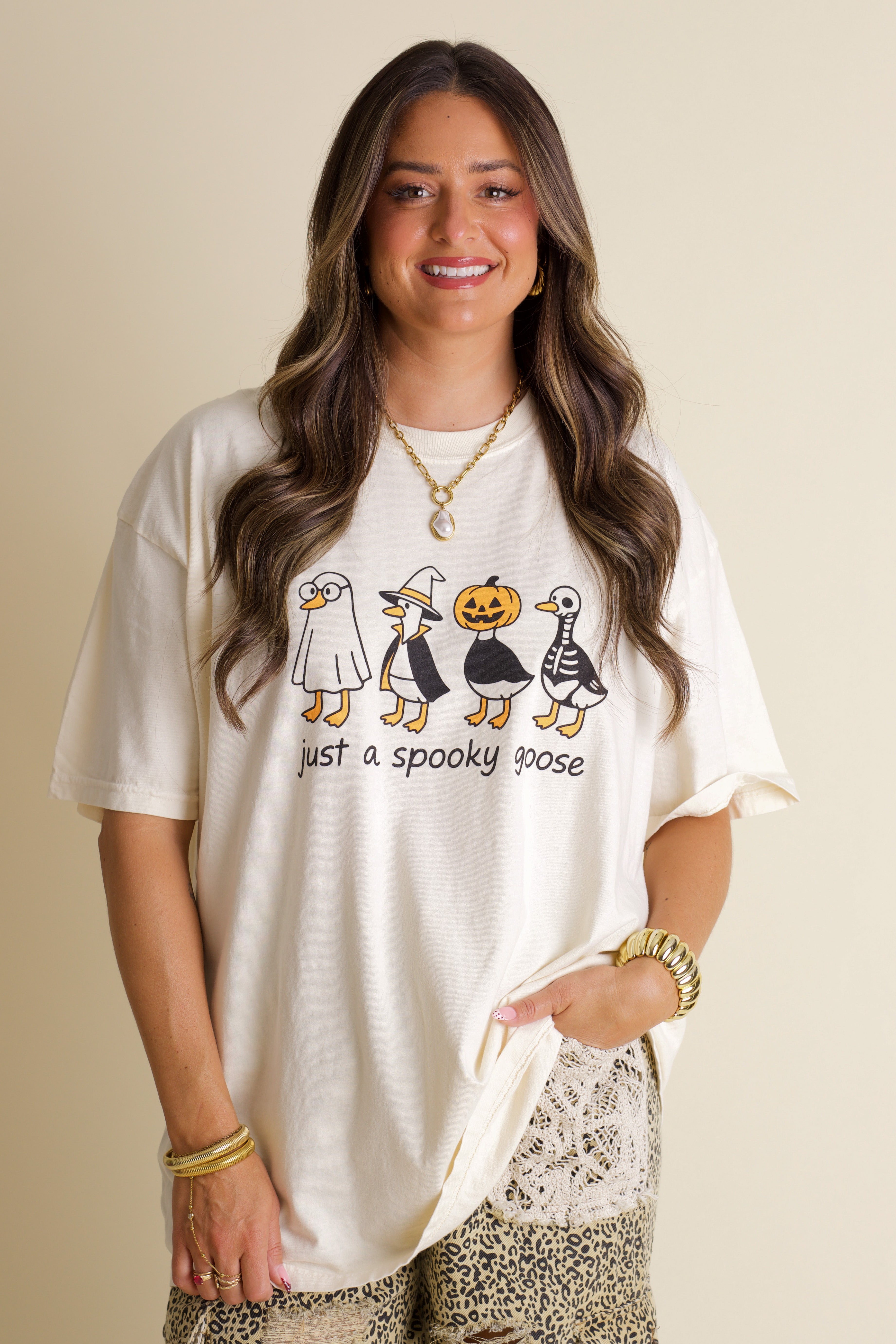 Get ready for spooky season with the Spooky Goose Tee! This soft ivory Comfort Colors shirt features an adorable spooky goose graphic, perfect for adding a playful touch to your fall wardrobe. Screen printed in-house for quality and comfort, it’s the cutest way to celebrate the season.