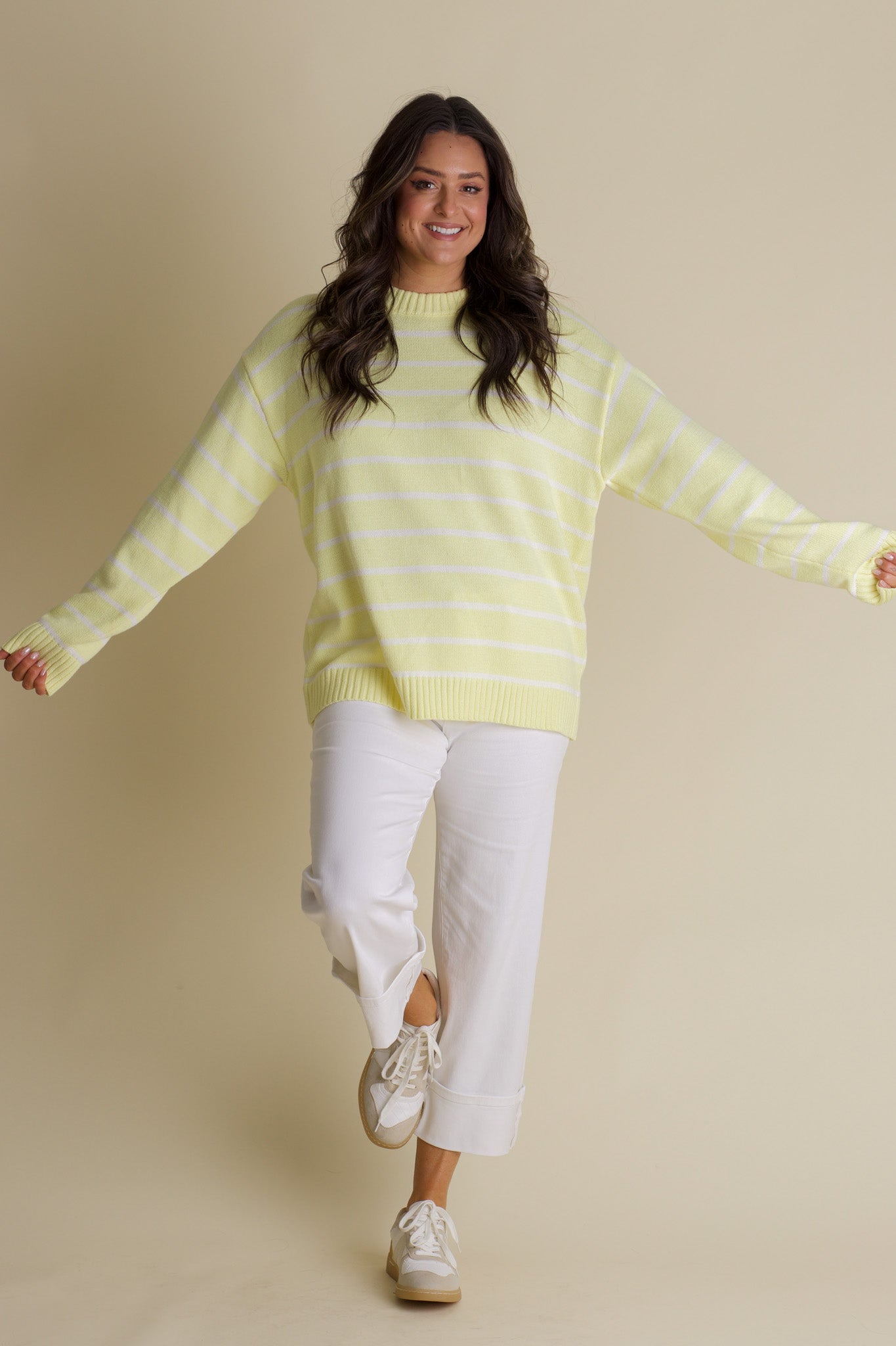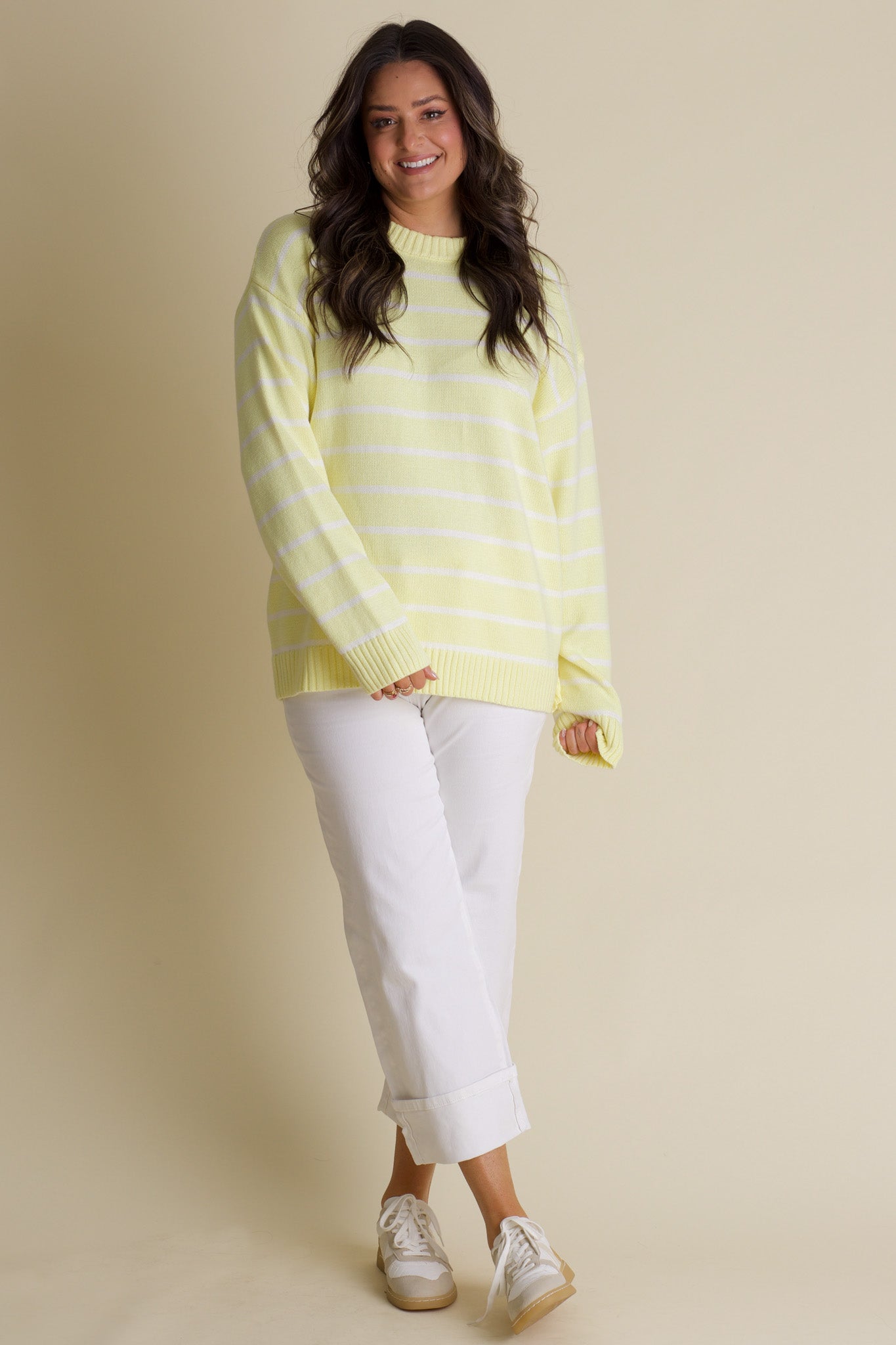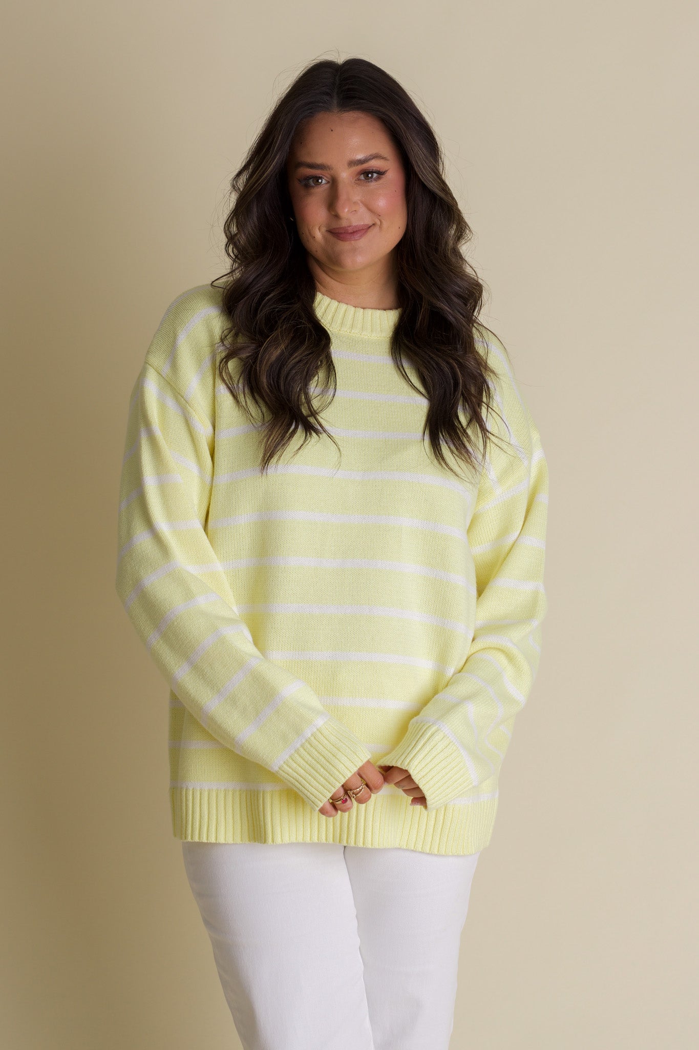 Brighten your wardrobe with the Sunny Days Striped Sweater, featuring cheerful yellow and white stripes that bring a splash of sunshine to any outfit. Its chunky knit and ribbed trim add cozy texture, while the oversized fit offers relaxed comfort perfect for layering. Stay snug and stylish with this playful, eye-catching sweater that’s ready to brighten even the cloudiest days. Limited stock and available in sizes small through large!