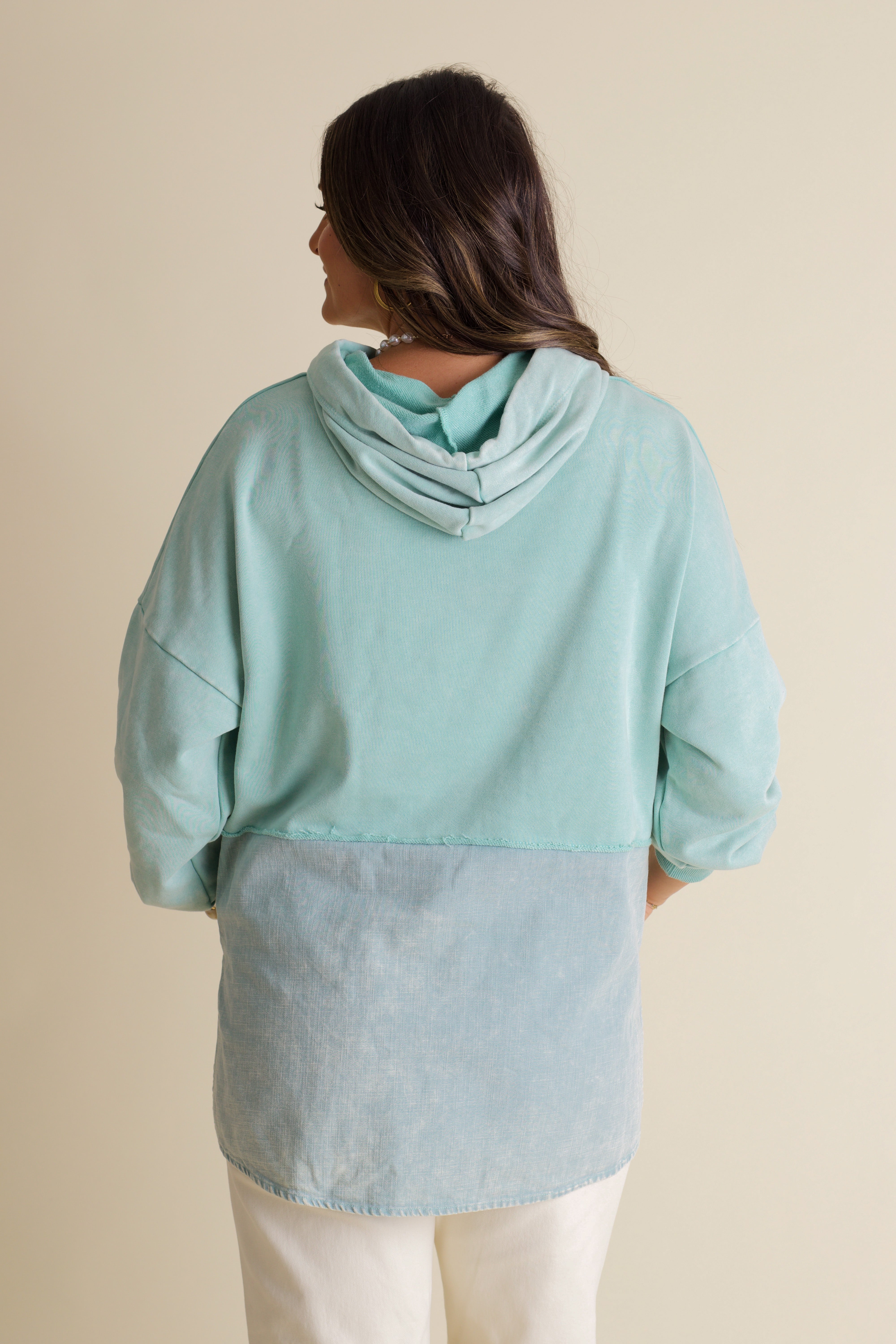 Get cozy in our Winter Garden Hooded Top! Made from a soft washed fabric with a cotton buttoned bottom and side slits, this top will keep you warm and stylish. Complete with dolman sleeves and a ribbed trim, it's the perfect addition to your  fall winter wardrobe. Available in 2 color options and sizes small through large!