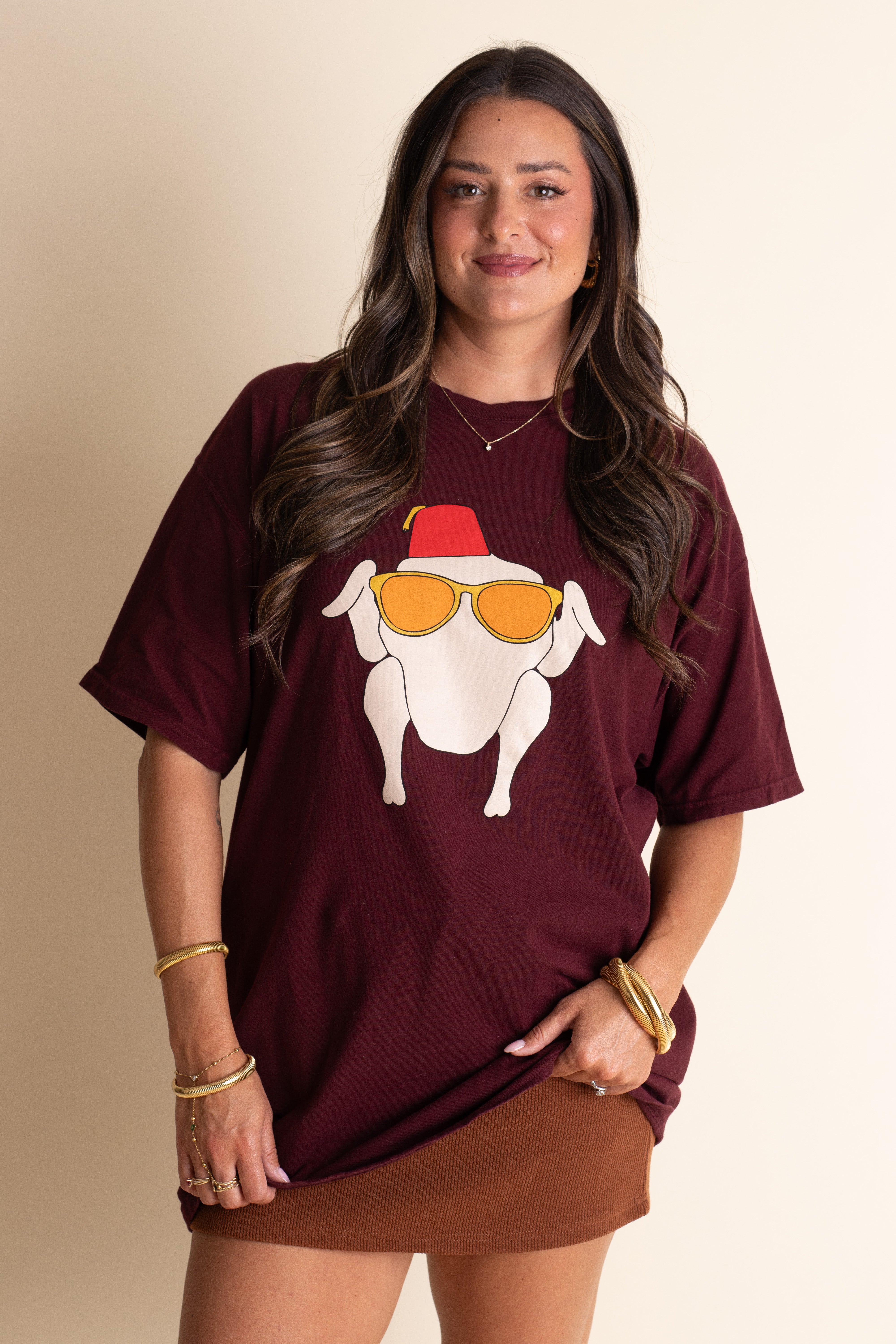 Celebrate Thanksgiving like a true Friend’s fan with our playful Friend’s Turkey Tee! This soft burgundy comfort wash shirt features the iconic turkey graphic screen printed right here in-house, blending festive fun with cozy comfort. Perfect for laughs and holiday vibes all season long.