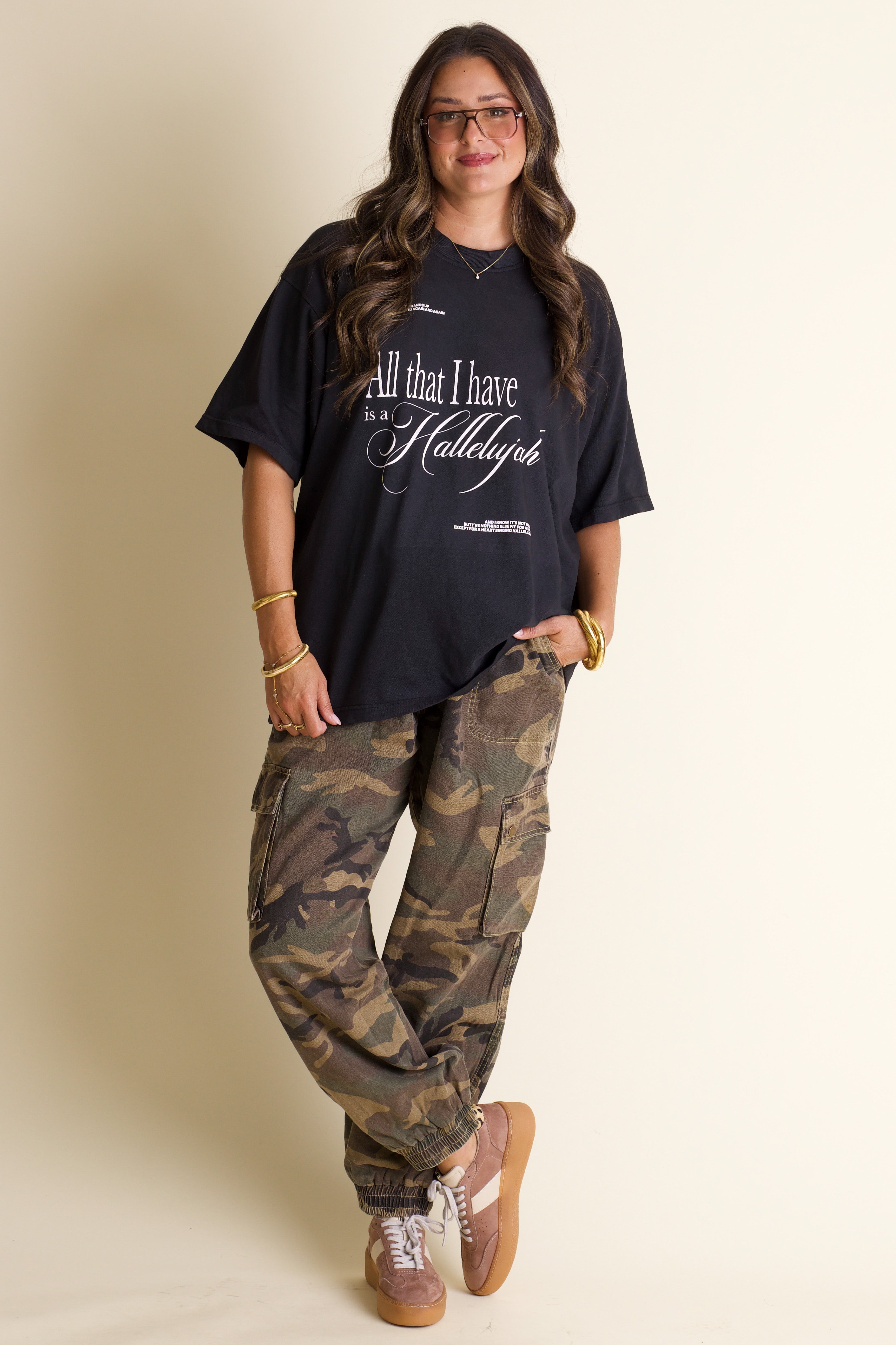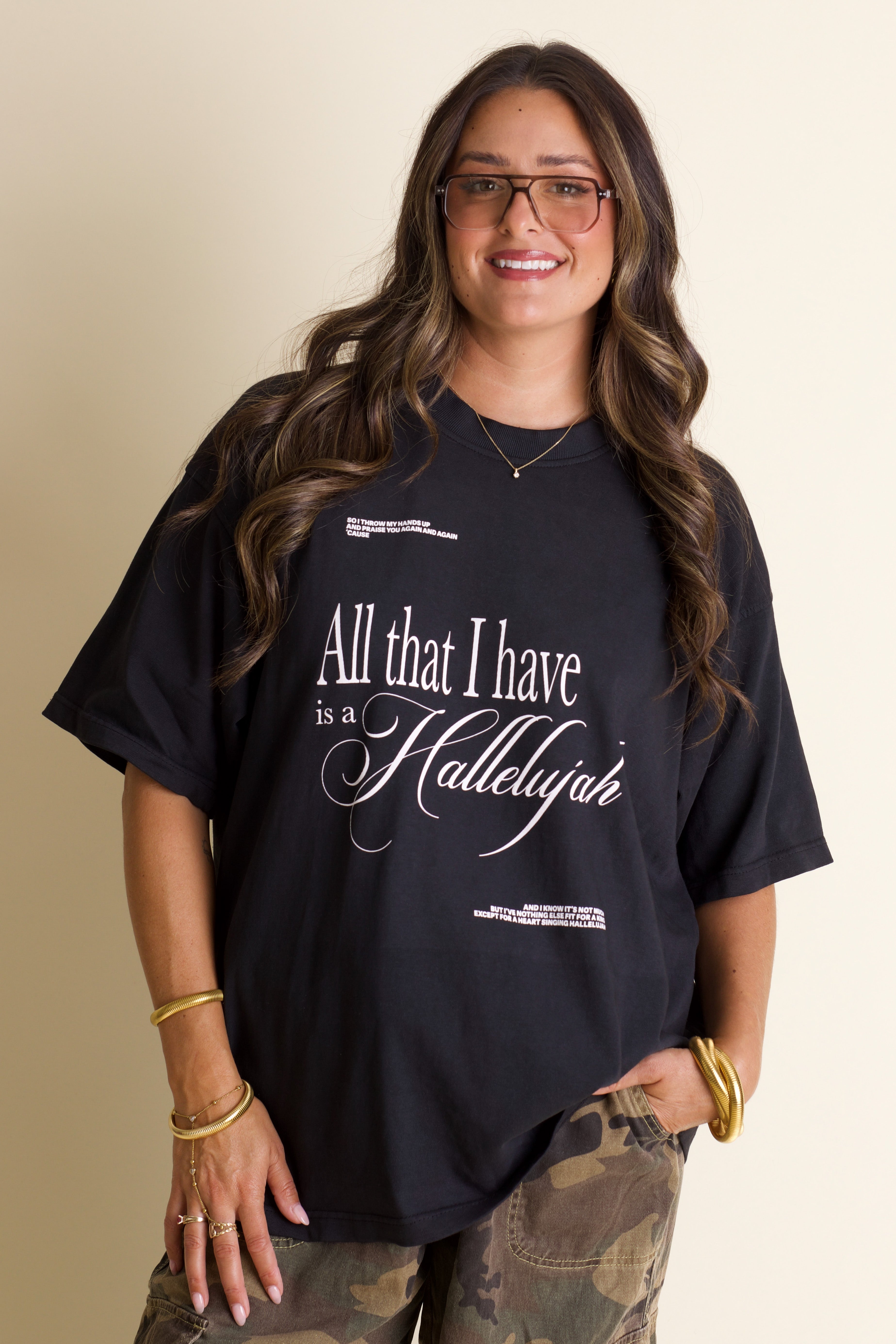 Raise your hands and celebrate with the Hallelujah Mock Neck Tee! This premium black tee features a cozy mock neck and a crisp white screen-printed lyric graphic—handcrafted in-house with love. Perfect for singing along or simply showing off your favorite song in style, it’s a playful way to wear your heart on your sleeve.