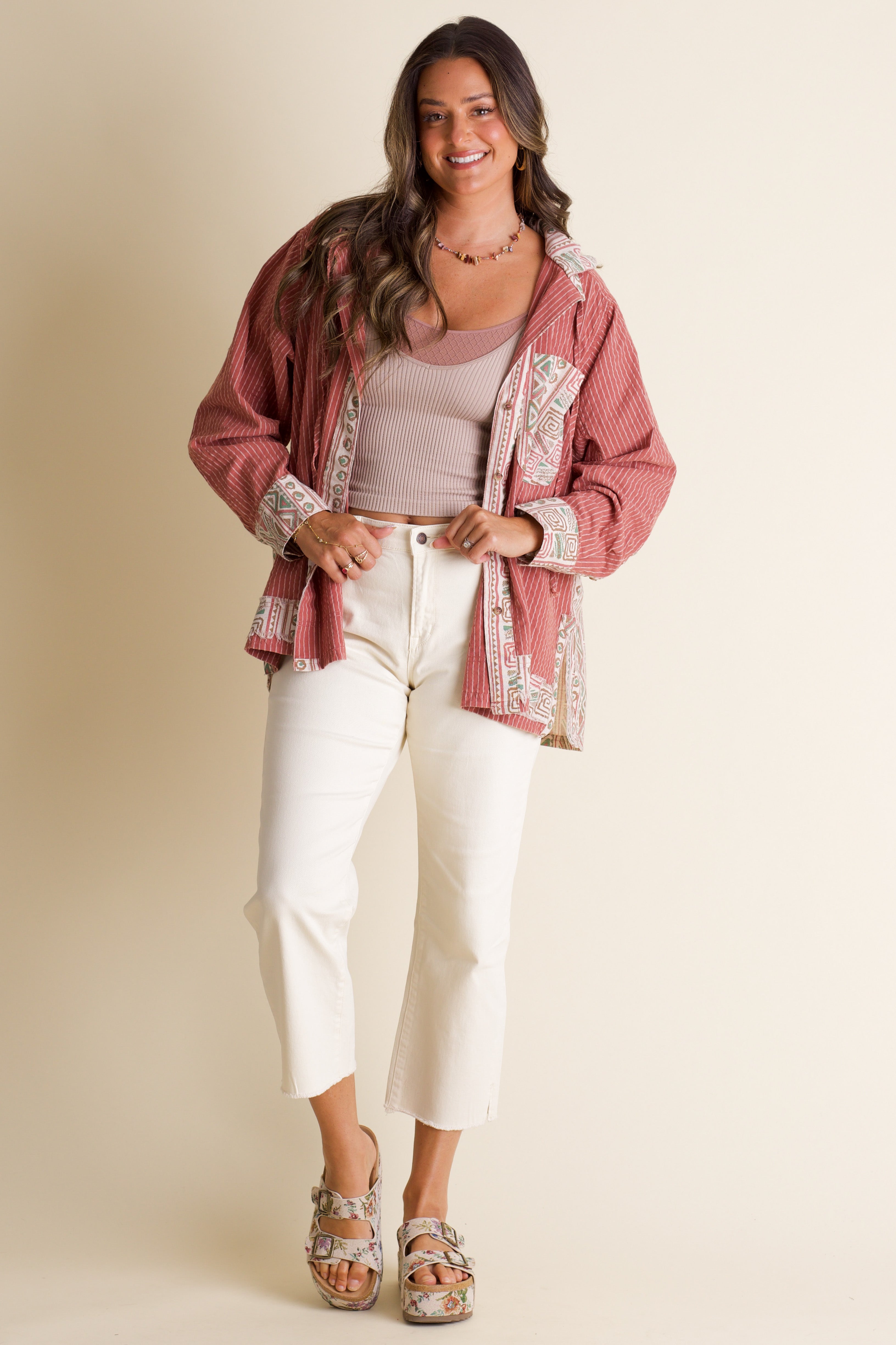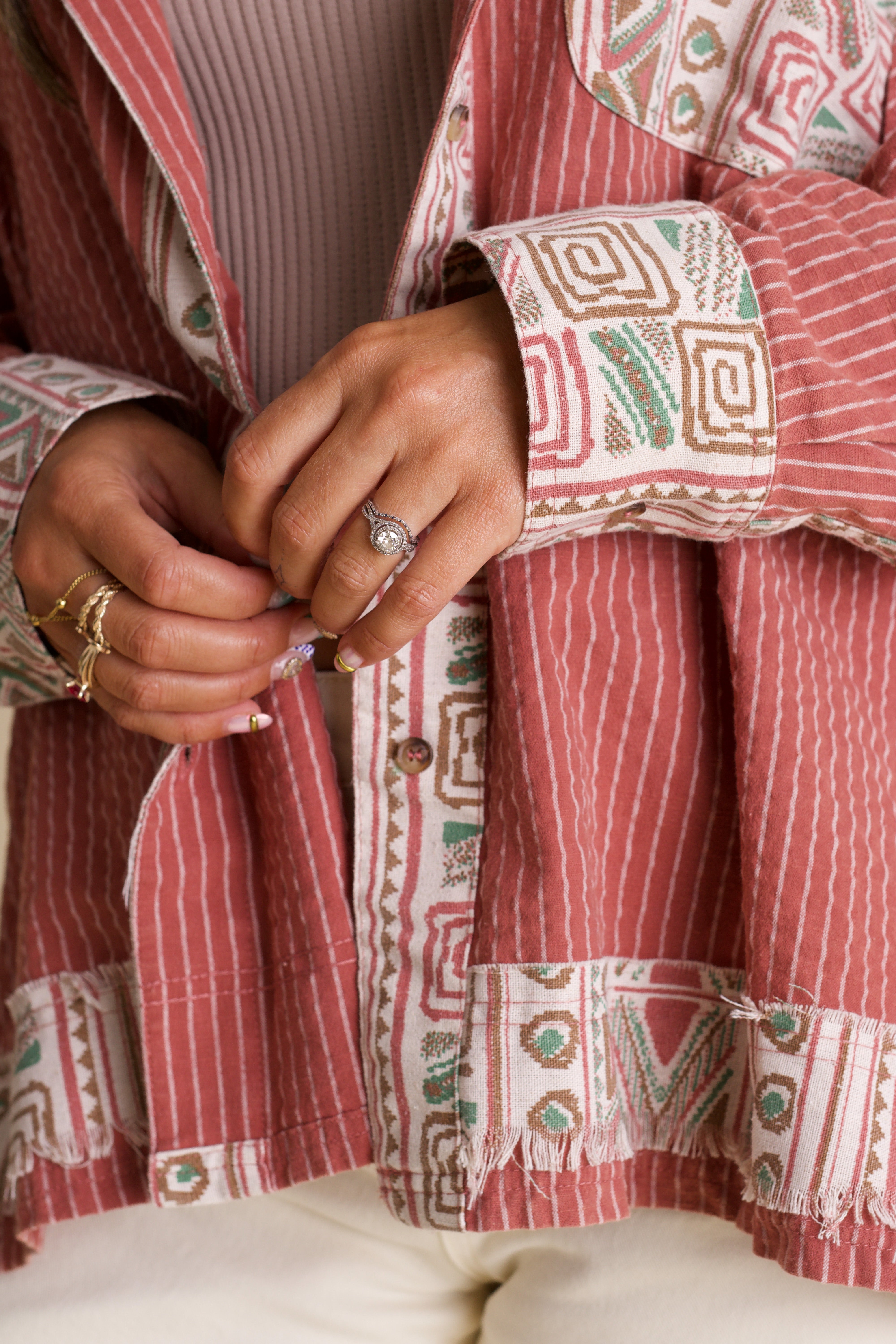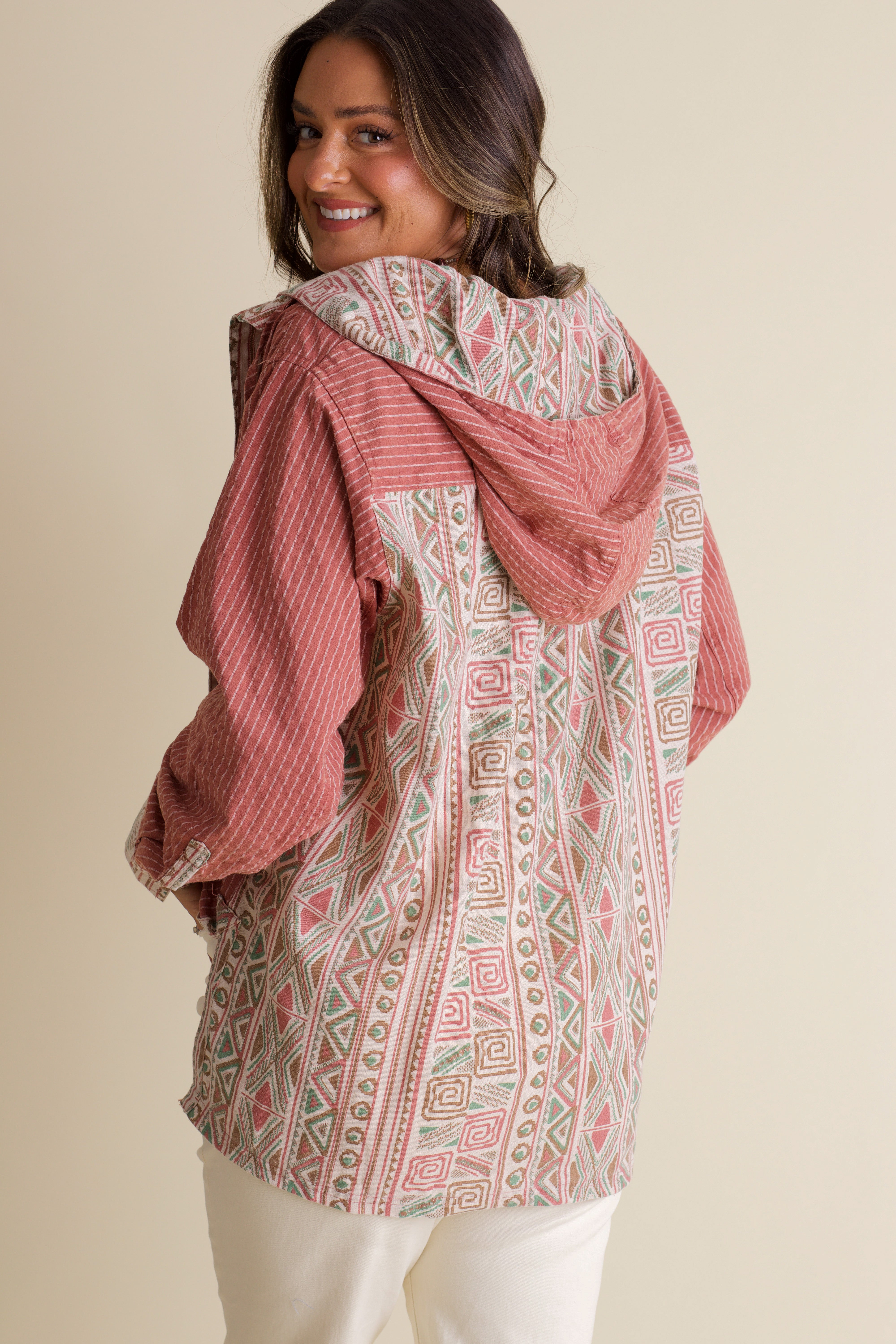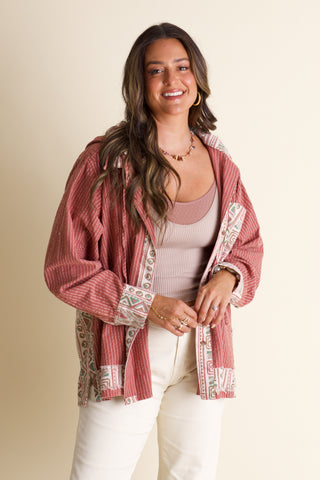 Step up your comfort game with our Free To Be Hooded Jacket! Made from soft cotton with a trendy striped design, this jacket features a printed trim and front pocket for added style. With a button down front and side slits, it's the perfect blend of fashion and function. Plus, the oversized fit gives you the freedom to move and lounge in ease. Stay cozy and effortlessly cool! LImited stock and available in sizes small through XL!