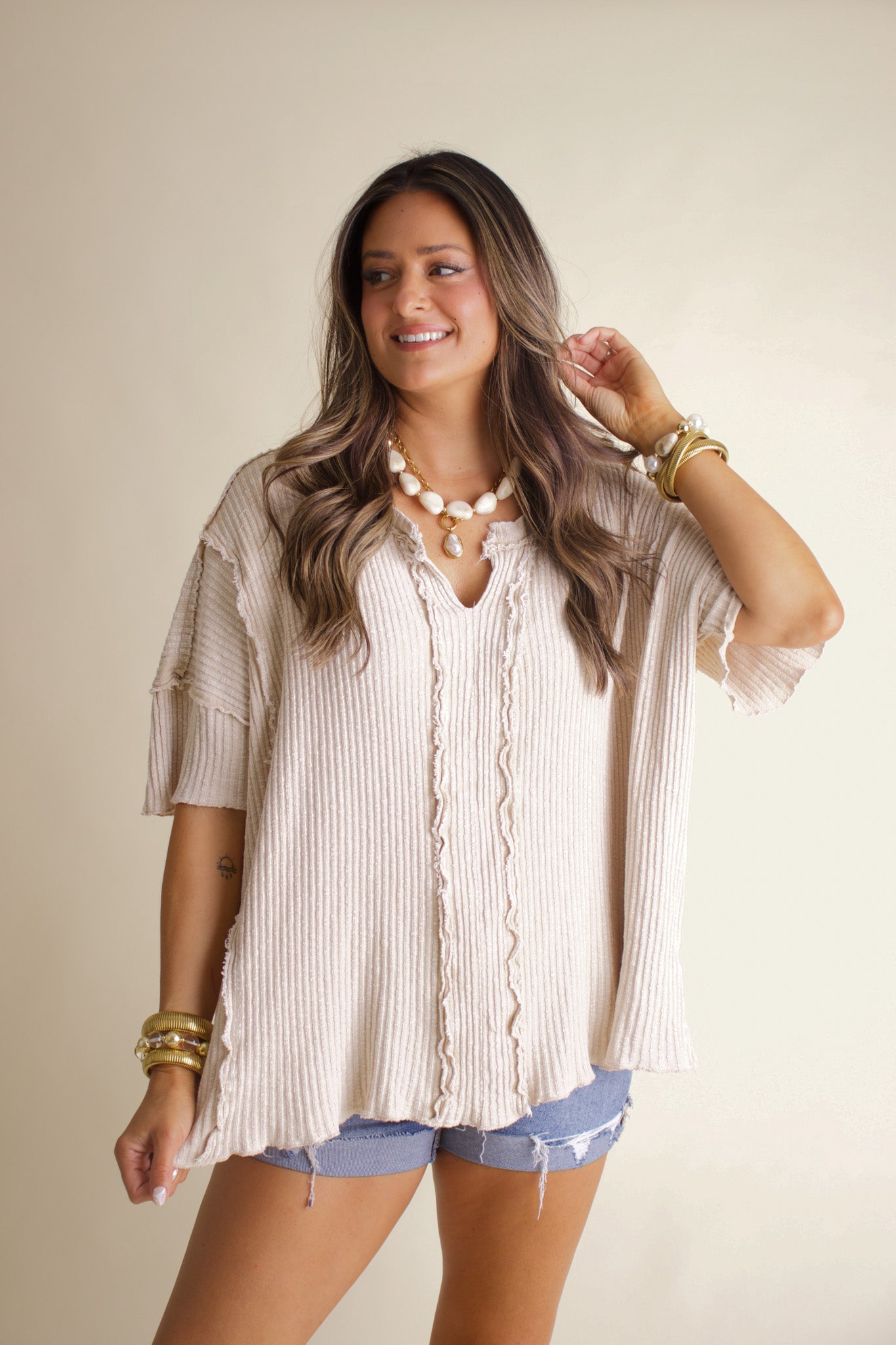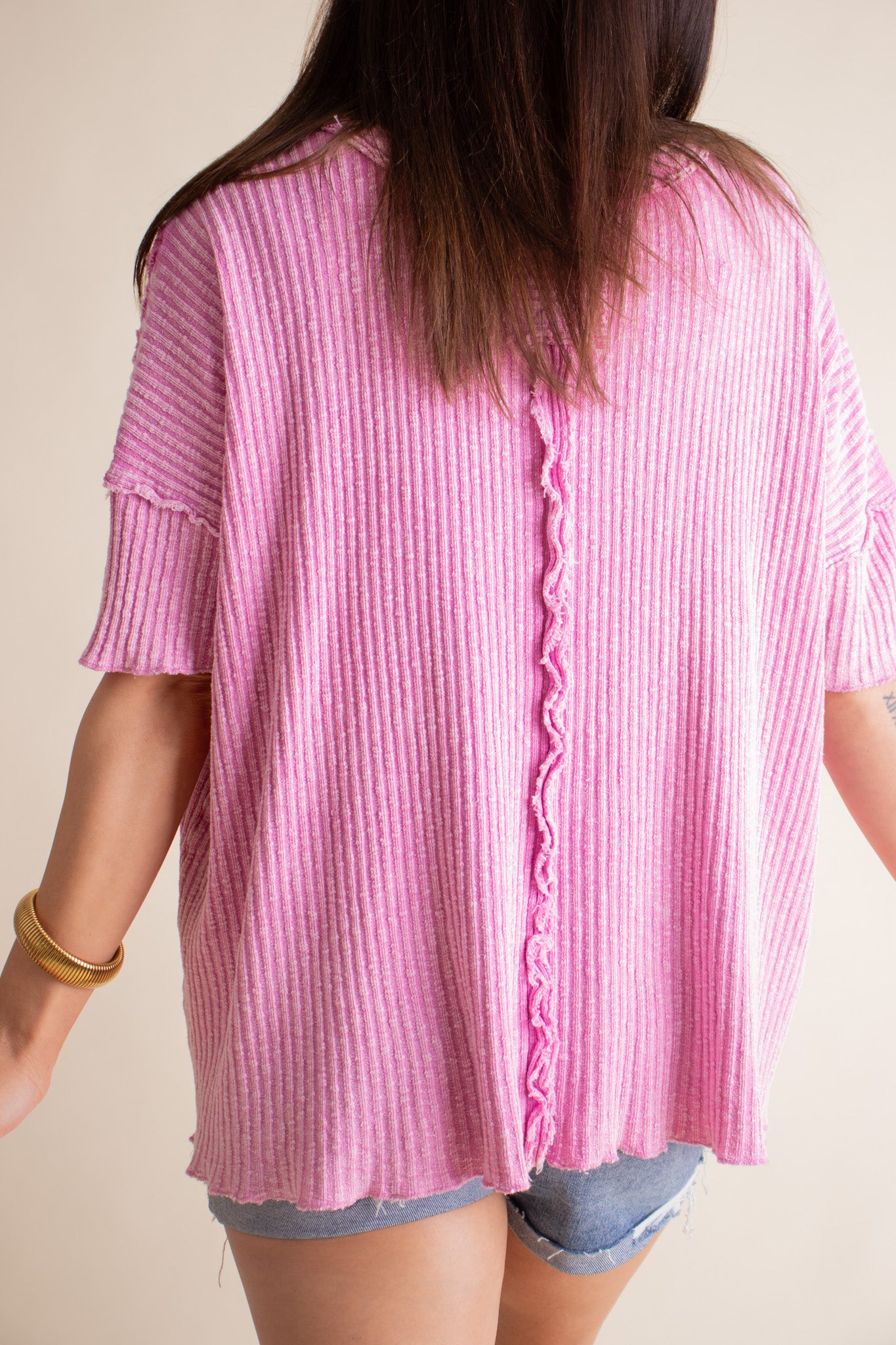 Get ready for some playful fun with our Spring Fling Mineral Wash Top! This lightweight ribbed v neck summer sweater boasts a relaxed fit and raw edge seams. Perfect for an effortless and stylish look. Available in 3 color options and sizes small through large!