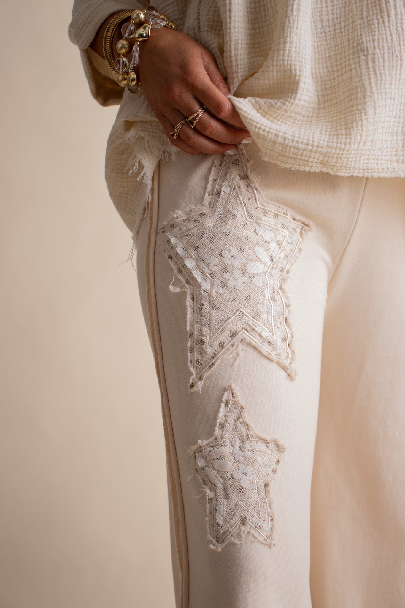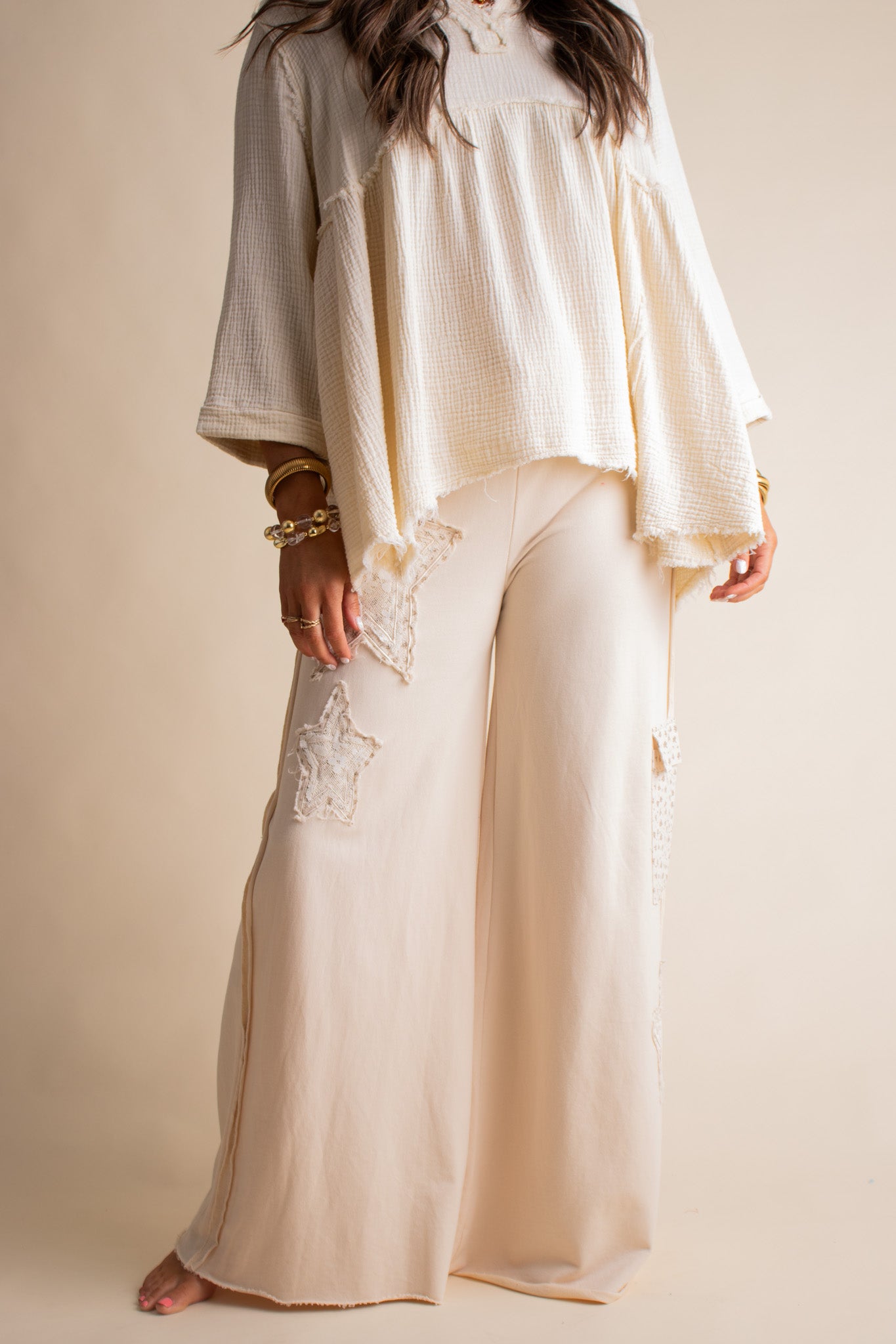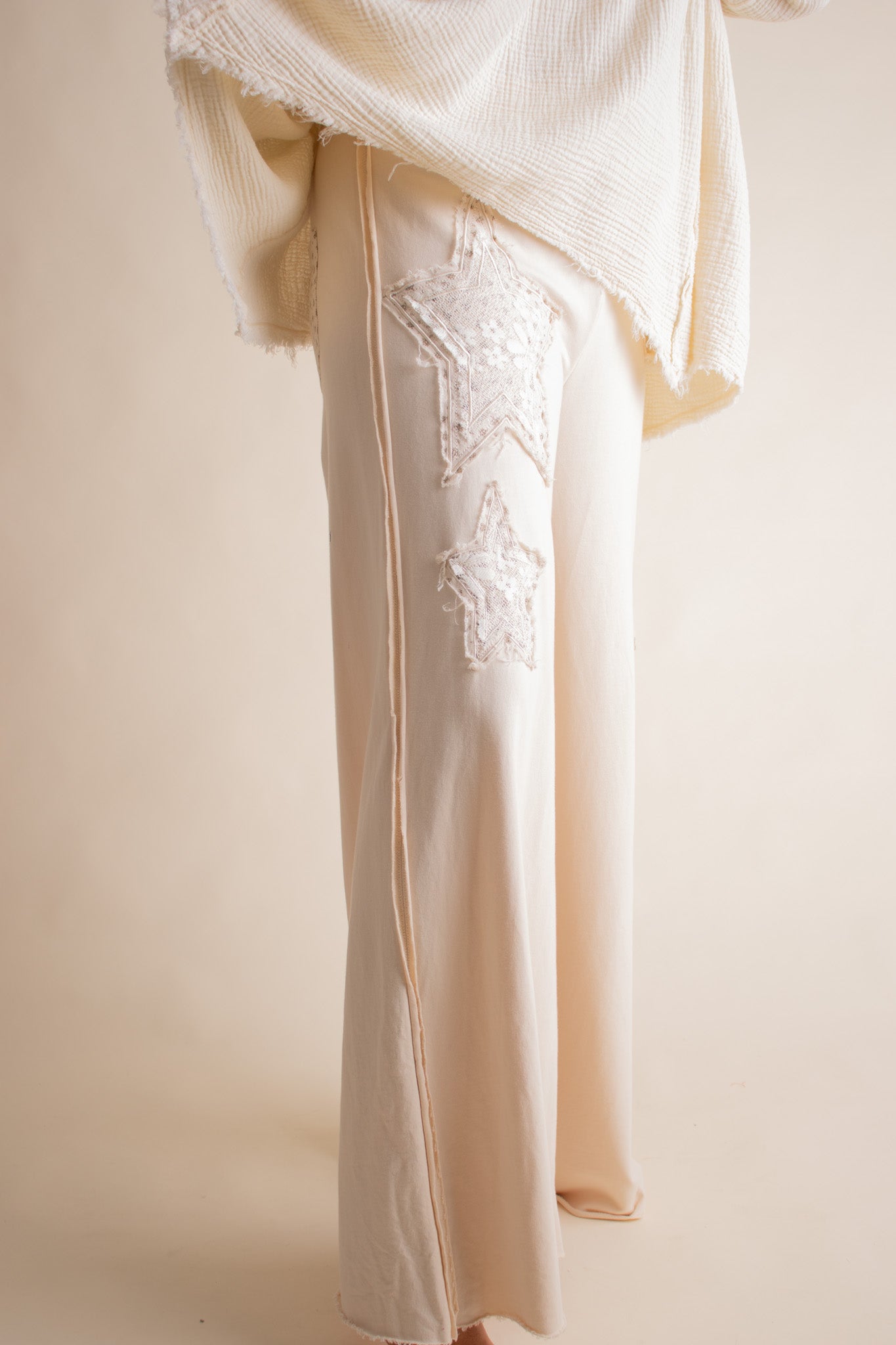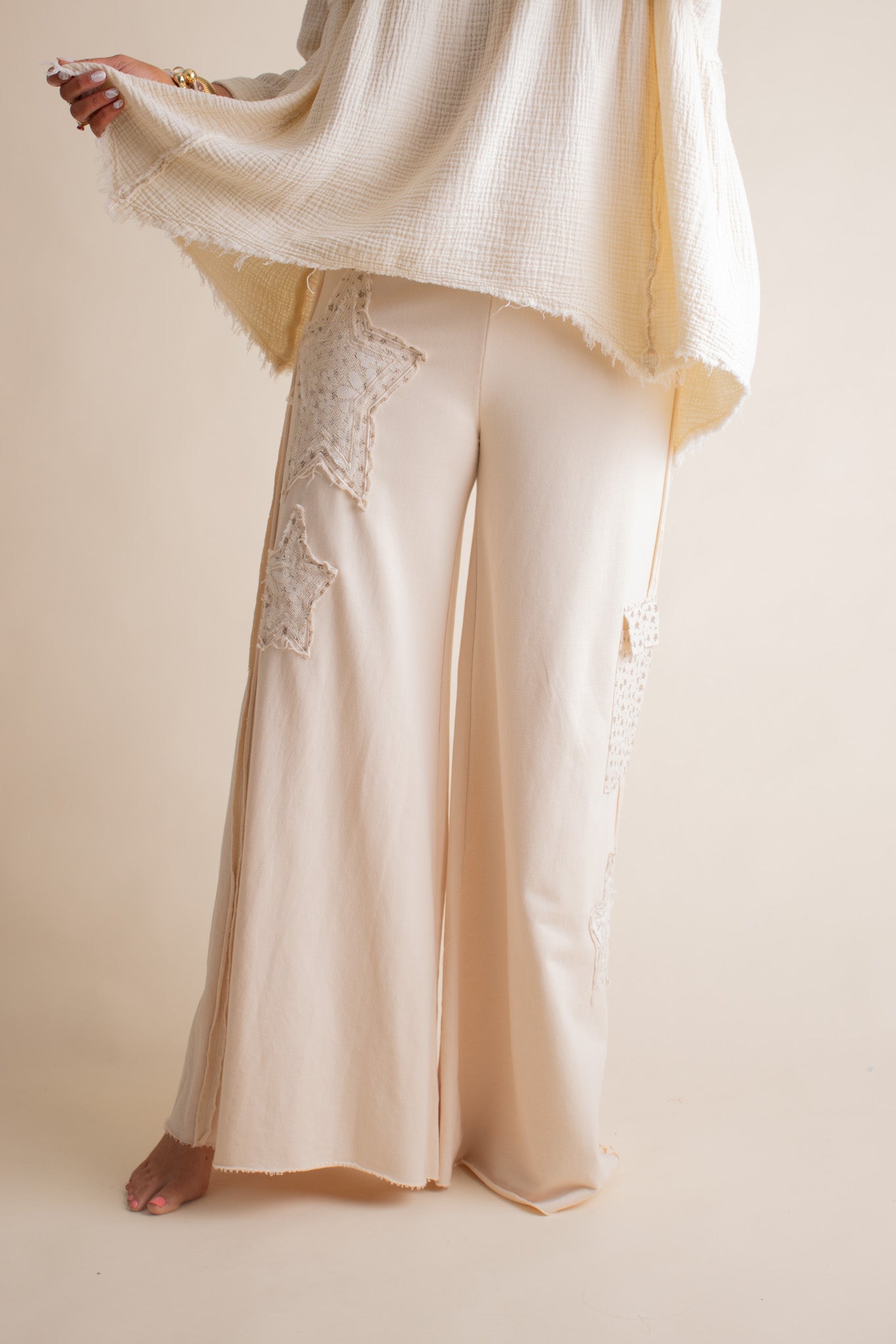 Fly to fashion heights with our To The Stars Wide Leg Pants! Made from cozy terry knit, these pants feature a high elastic adjustable waist and adorable floral star embroidered patches. With a floral cargo pocket, these pants add a fun twist to any outfit. Get ready to reach for the stars with our trendy and comfortable pants. Limited stock and available in sizes small through large!