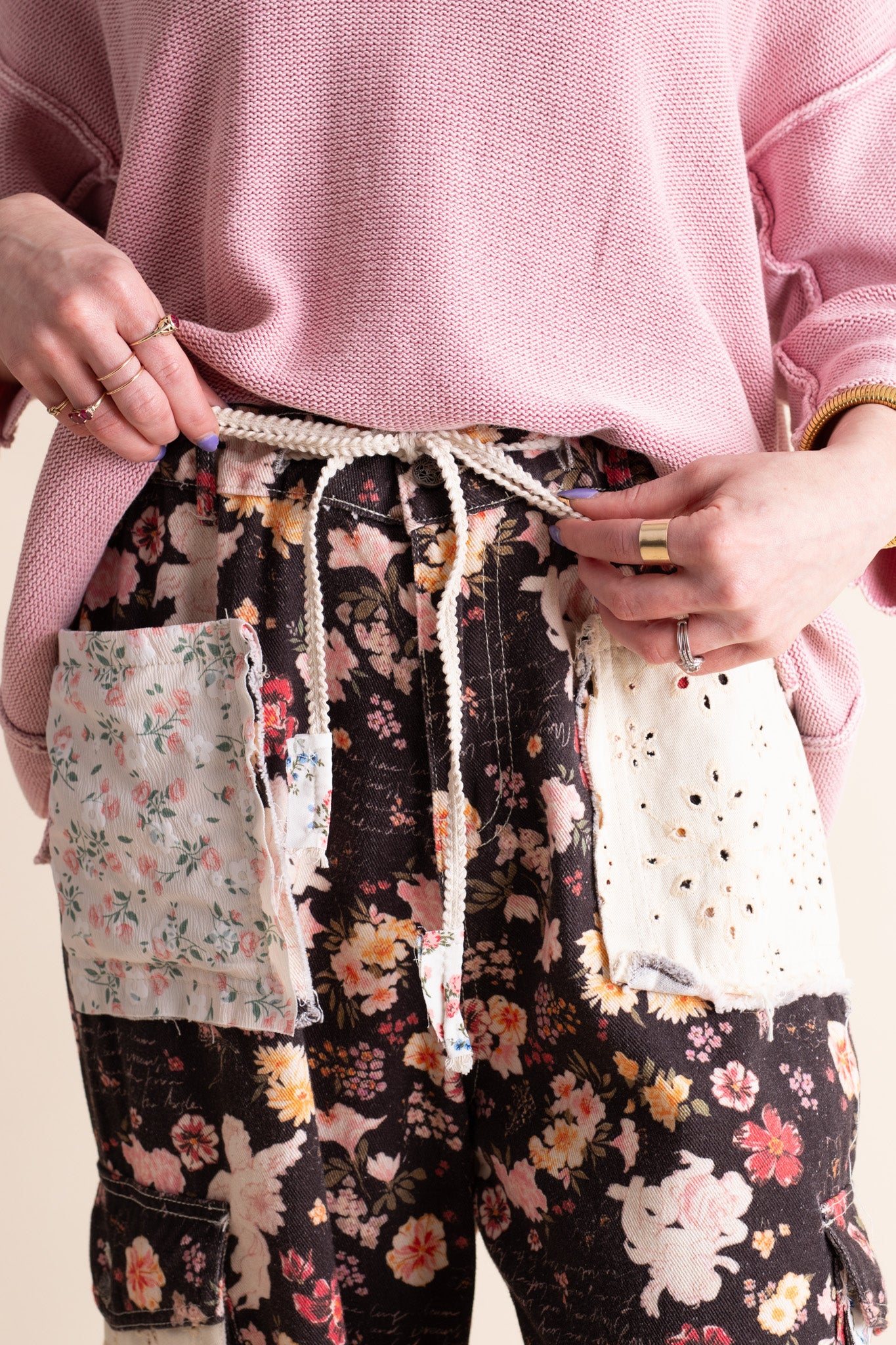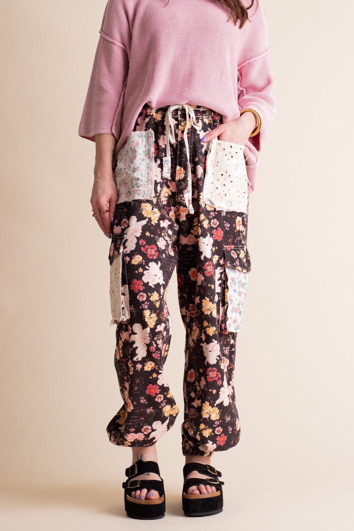Bloom into style with our Fresh Start Floral Joggers! These sassy black denim joggers feature eye-catching patchwork floral designs and handy cargo pockets for all your treasures. The high waistband with elastic back hugs you in all the right places, while the braided tie adds a fun finishing touch. Perfect for days when you want to look cute but feel comfy! Limited stock and available in sizes small through large!