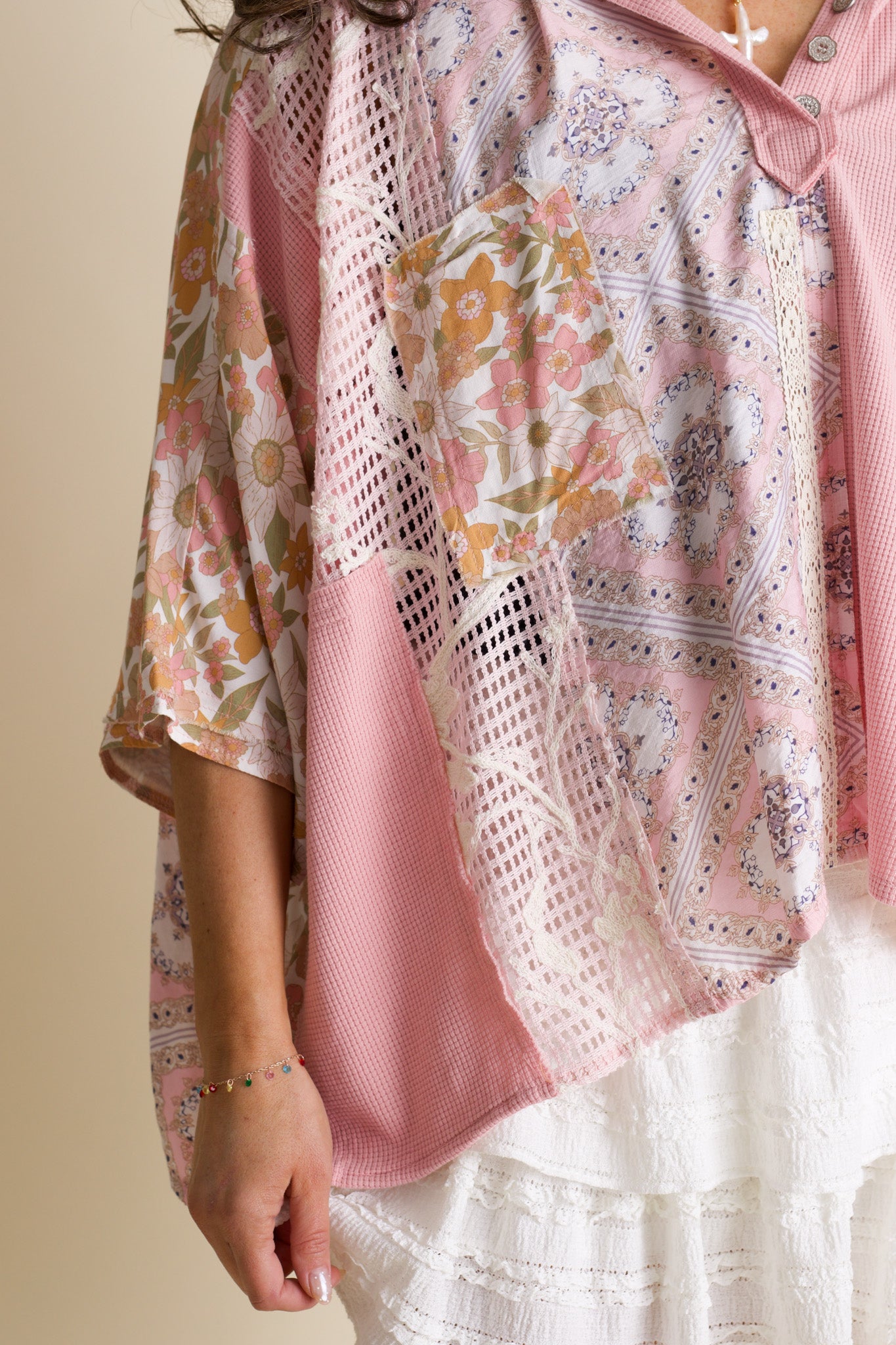 Embrace cozy charm with the All In The Details Hooded Top! Crafted from soft thermal cotton, this playful piece features delicate floral embroidery and crochet accents. Its kimono sleeves and ornate half-button front add a whimsical touch, while the oversized fit ensures comfort and effortless style. Perfect for layering or lounging, this top brings a fun, breezy vibe to your wardrobe. Limited stock and available in sizes small through large!