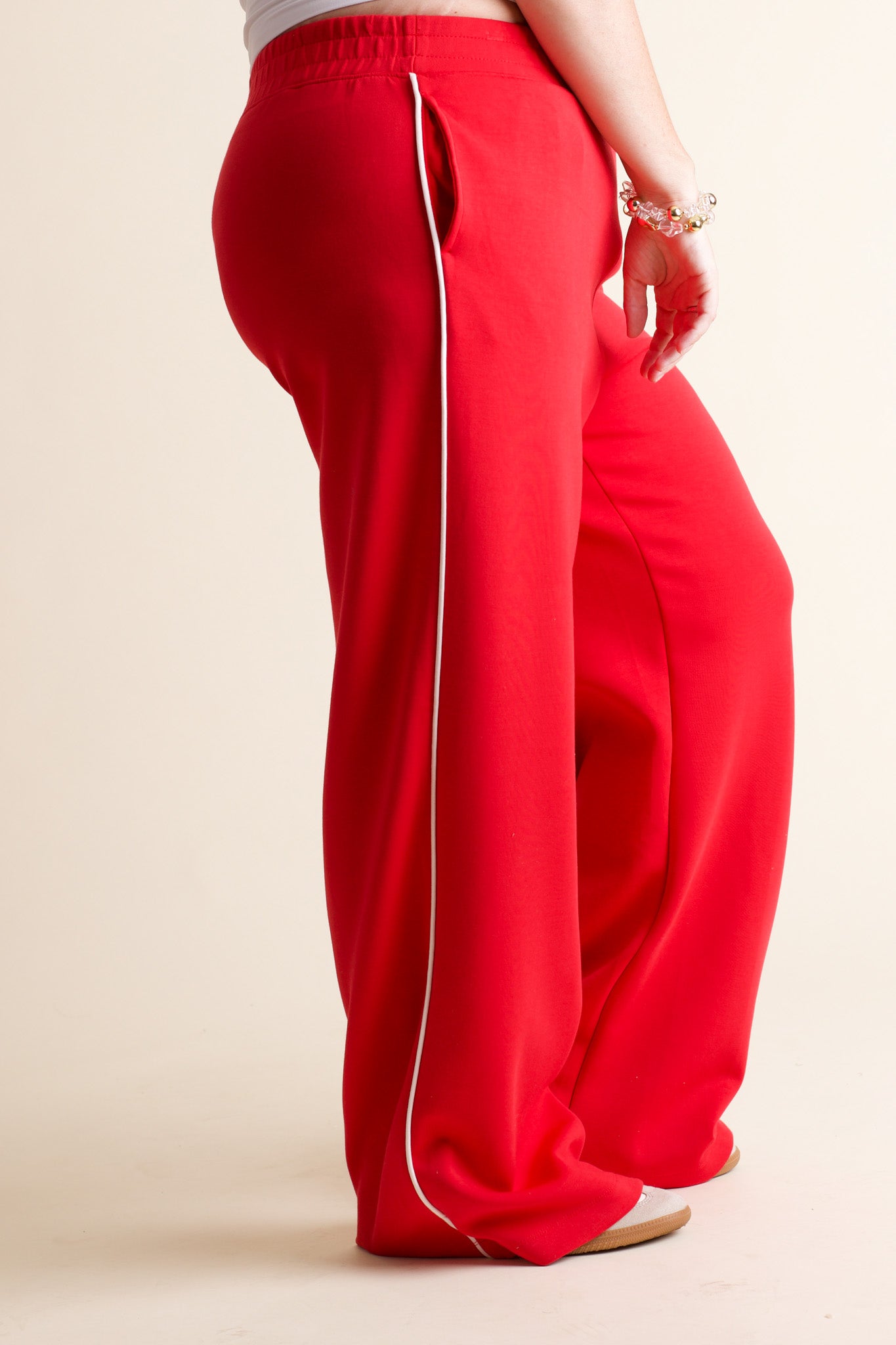 Introducing our Top Pick Scuba Piping Straight Leg Pants! Made from the softest scuba material, these pants feature a high elastic waistband for ultimate comfort, convenient pockets, and stylish white piping down the sides. Lounge in style and comfort with these comfy and playful pants! Available in 3 color options and sizes 1XL through 3XL!