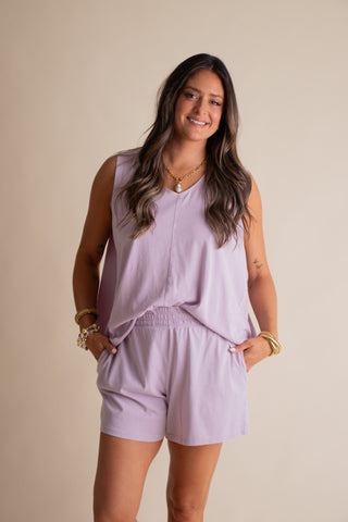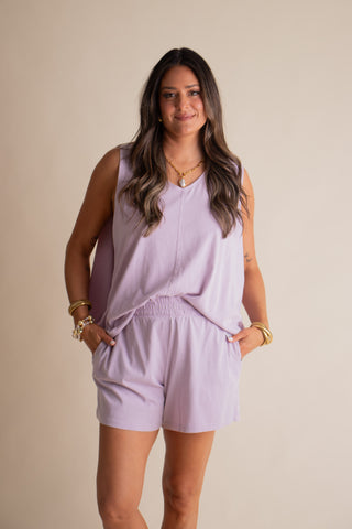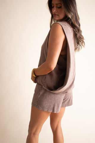 Get ready to slay your summer vibes in this mineral washed tank and shorts set! The flowy top with a high low hem and high elastic waist shorts with pockets will keep you looking cool and feeling comfortable. Perfect for your next beach vacation or casual summer outings. Who says you can't be stylish and comfy at the same time?! Available in 3 color options and sizes small through large!