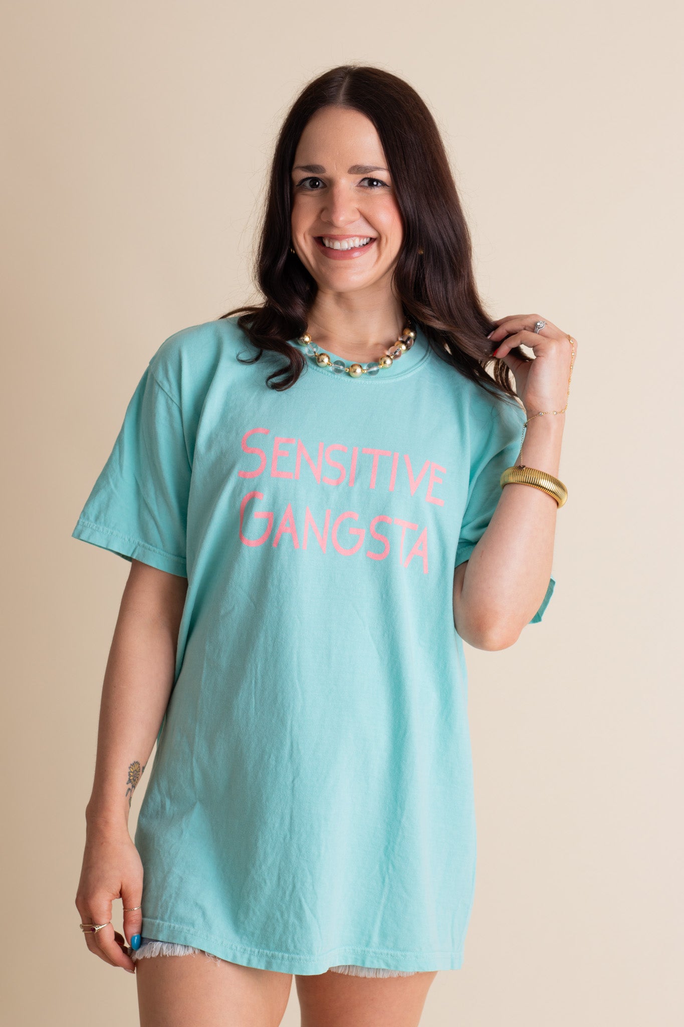Amaya Papaya fans, this Sensitive Gangsta tee is MADE for youâsweet, soft, and serving sass! Screen printed in house with a pink Sensitive Gangsta graphic! Snag yours before itâs gone!