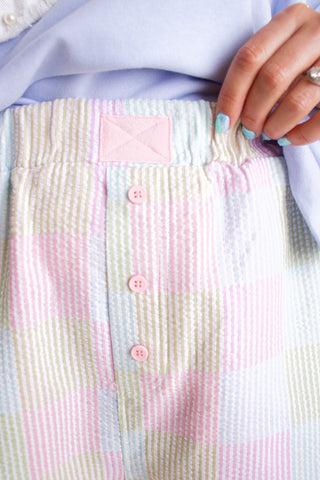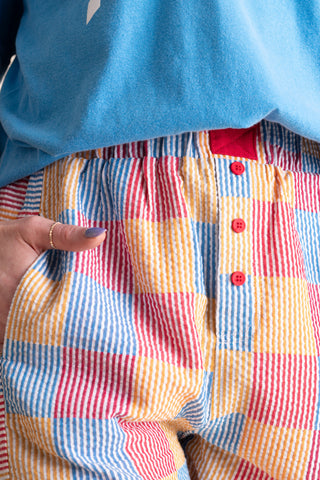 Strut your stuff in these eye-popping striped cotton boxer shorts! With a springy elastic waistband that stays put during pillow fights and pockets deep enough for your midnight snack stash, these boxers are ready for action. Pair them with your favorite graphic tee for the ultimate lounge combo that says "I woke up this fabulous!" Your casual wardrobe just got a whole lot more fun! Available in 4 color options and sizes small through large!